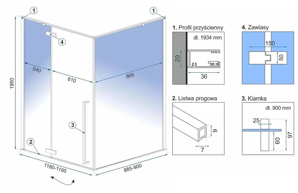 Wir präsentieren Ihnen die schöne und äußerst funktionale Eckduschkabine Fargo. Es ist ein Produkt, das Ihren Badezimmerbereich perfekt ausfüllt und das makellose Aussehen und die Ästhetik des Interieurs bewahrt. Das Glas der Fargo-Kabine besteht aus hochwertigem, gehärtetem Sicherheitsglas Crystal Clear mit einer laseraufgetragenen Easy Clean-Schicht. Dank der Elemente in hellem Gold ist unser Produkt äußerst elegant und gleichzeitig vielseitig und passt sicherlich in Ihr Interieur, egal ob es sich um ein modernes oder klassisches Badezimmer handelt. Die Kabine hat ein universelles Profil und kann auf der rechten oder linken Seite montiert werden. Dank ihrer Konstruktion ermöglicht die Fargo-Kabine die Montage auf einer Duschwanne unterschiedlicher Höhe oder direkt auf dem Boden. Im Lieferumfang ist alles enthalten, was für die Montage der Kabine benötigt wird: Dichtungen, Halterung, Scharniere.