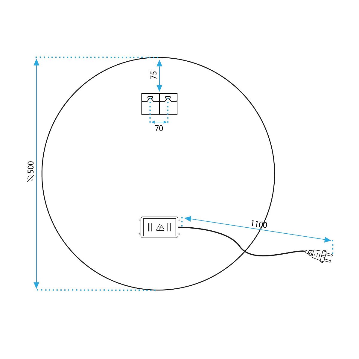 Der runde Spiegel mit LED-Beleuchtung ist die ideale Wahl für diejenigen, die Komfort bei der Nutzung und modernes Design schätzen. Der Spiegel ist aus hochwertigsten Materialien gefertigt, präsentiert sich hervorragend und ist sehr langlebig. Er bietet drei per Berührung wechselbare LED-Lichtfarben – warm, neutral und kalt – sowie eine Heizfunktion, die das Beschlagen der Oberfläche verhindert. Der Touch-Schalter, der sich auf der Spiegeloberfläche befindet, leuchtet bei Aktivierung der Funktion blau. Das Netzkabel ist weiß und hat eine Länge von 110 cm.