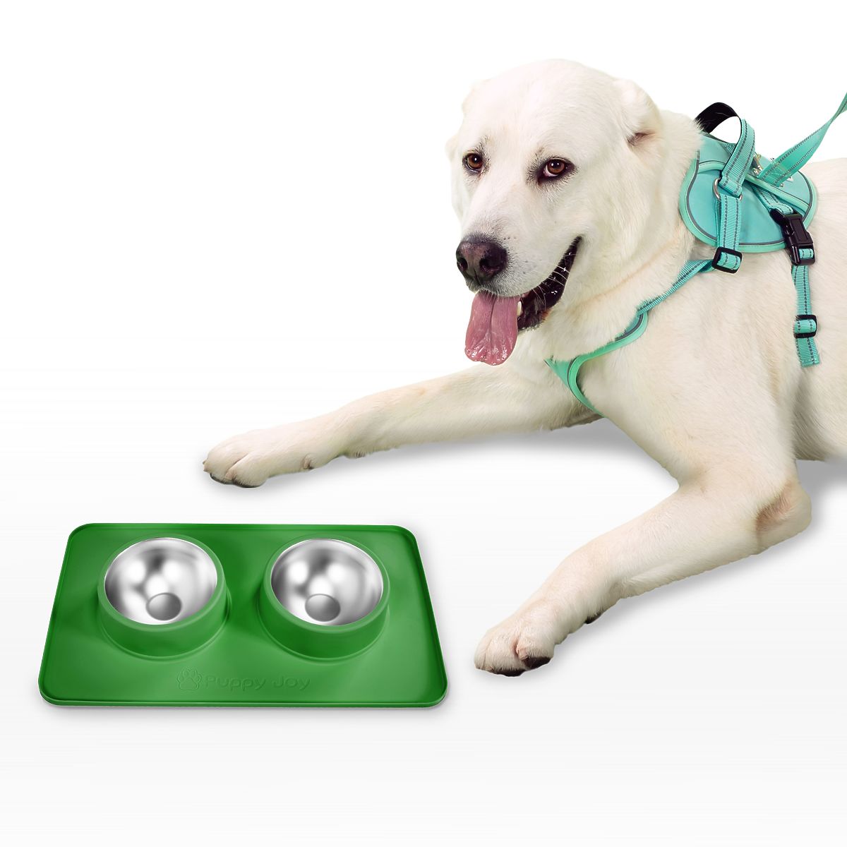 Metallschalen für Hunde oder Katzen mit rutschfester Unterlage Grün PJ-087