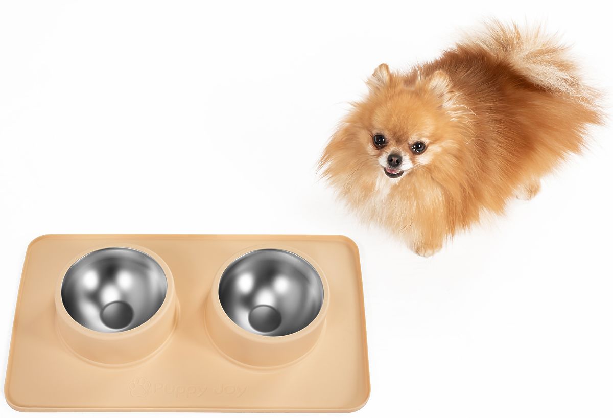 Metallschalen für Hund oder Katze mit rutschfester Unterlage Beige PJ-089