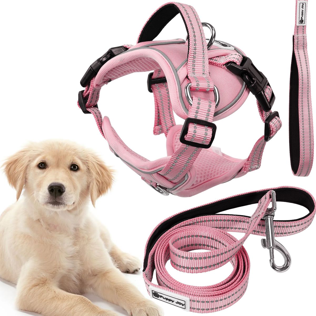 Hundeleine und Geschirr PJ-060 rosa L