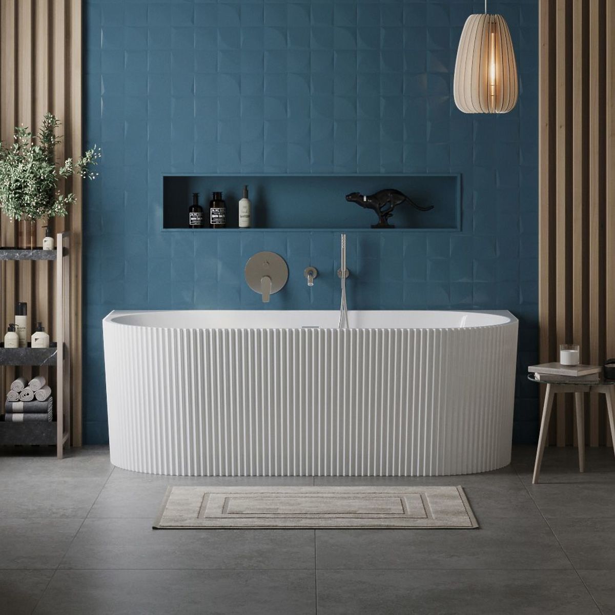 Die schöne und äußerst funktionale Badewanne füllt perfekt Ihren Badezimmerbereich aus und bewahrt dabei das makellose Aussehen und die Ästhetik des Interieurs. Die einzigartige geriffelte Textur verleiht der Wanne ein originelles Aussehen. Die Wanne ist für die Wandmontage an jedem beliebigen Ort im Badezimmer geeignet. Sie besteht aus strapazierfähigem und kratzfestem Acryl. Dank eines speziellen Herstellungsverfahrens ist sie langlebig und leicht zu reinigen.