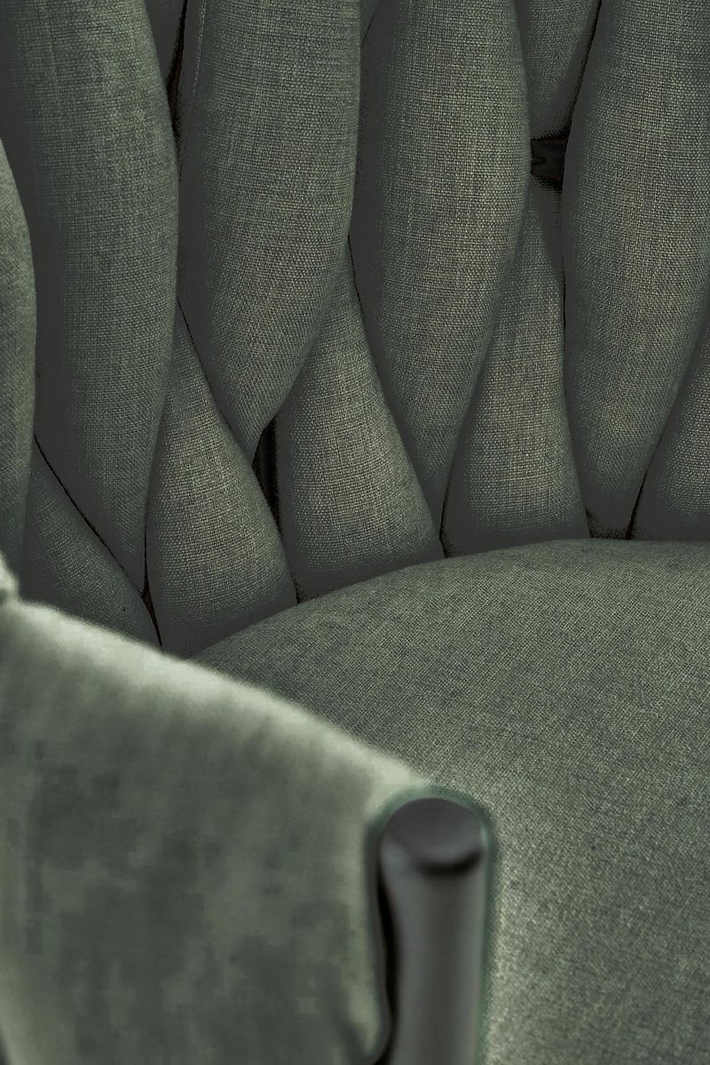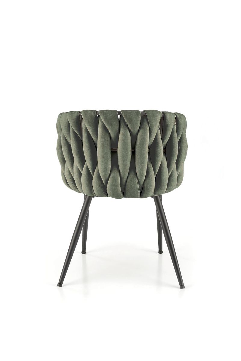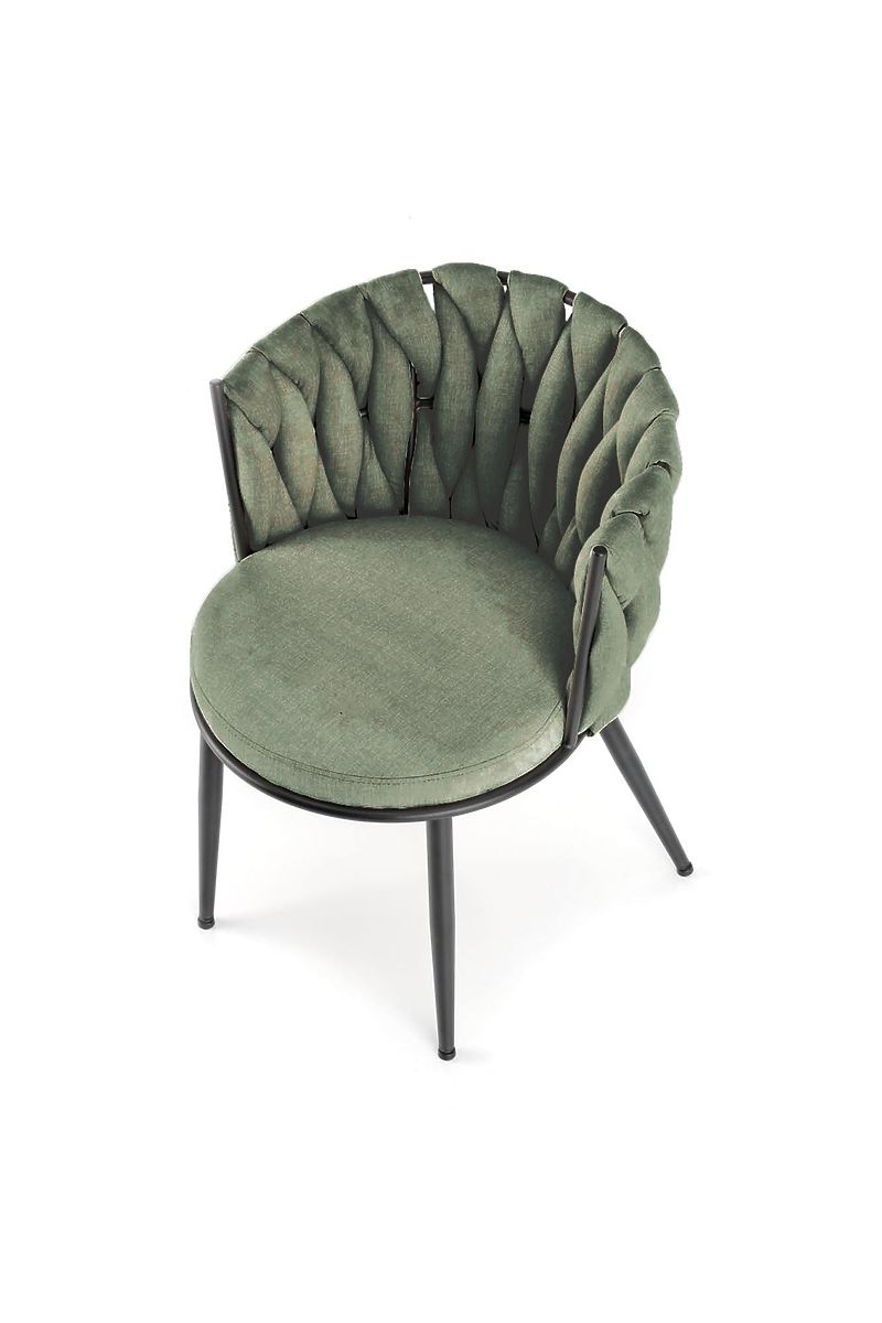 Stuhl aus Stoff und pulverbeschichtetem Stahl in Olivgrün. .. mehr