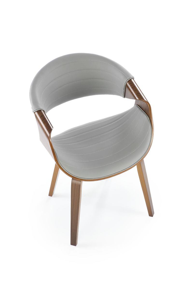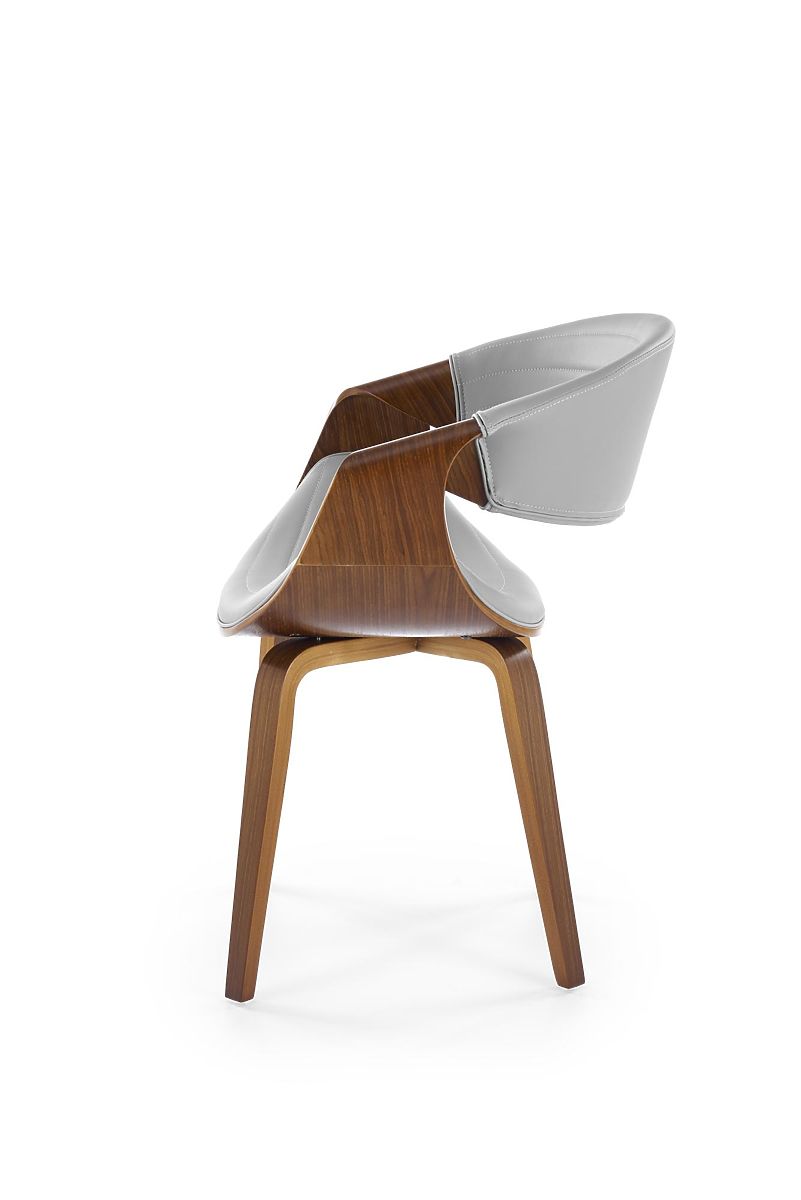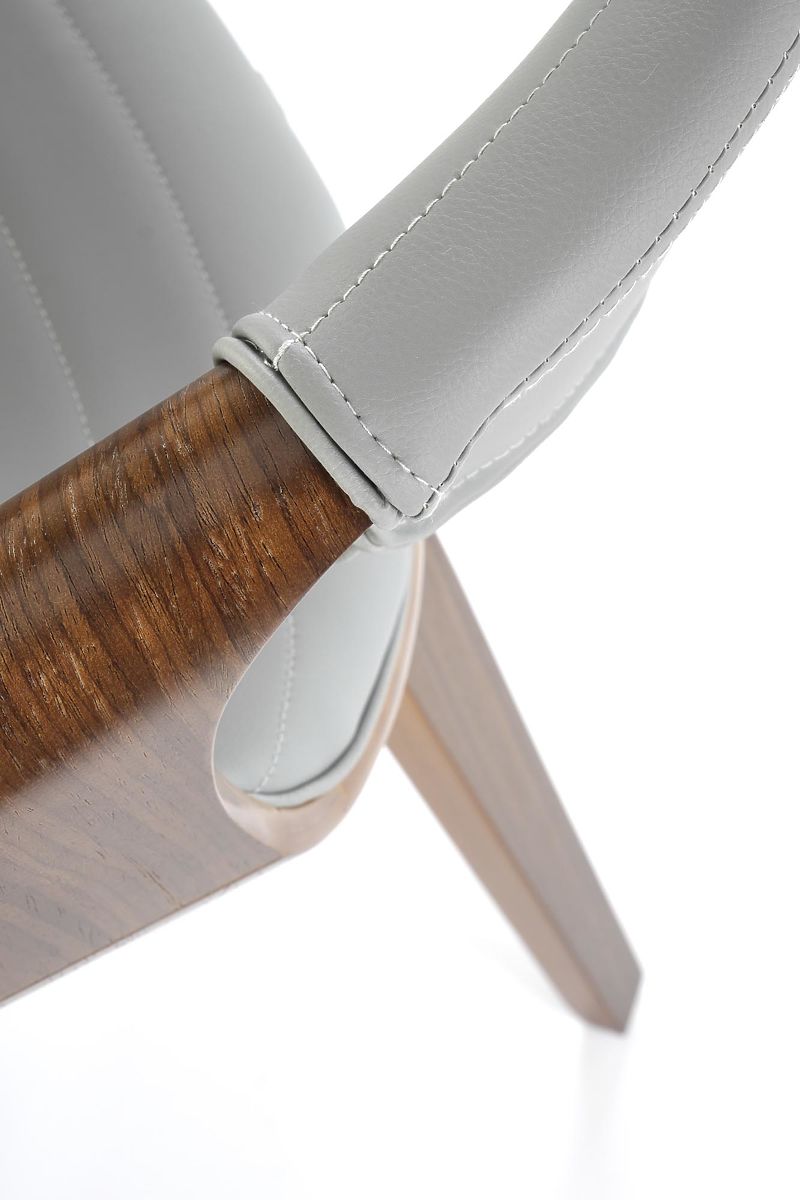 Stuhl aus gebogenem Sperrholz und Kunstleder in nussbaum-grau. .. mehr