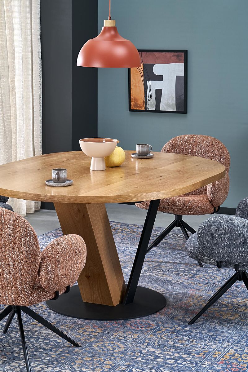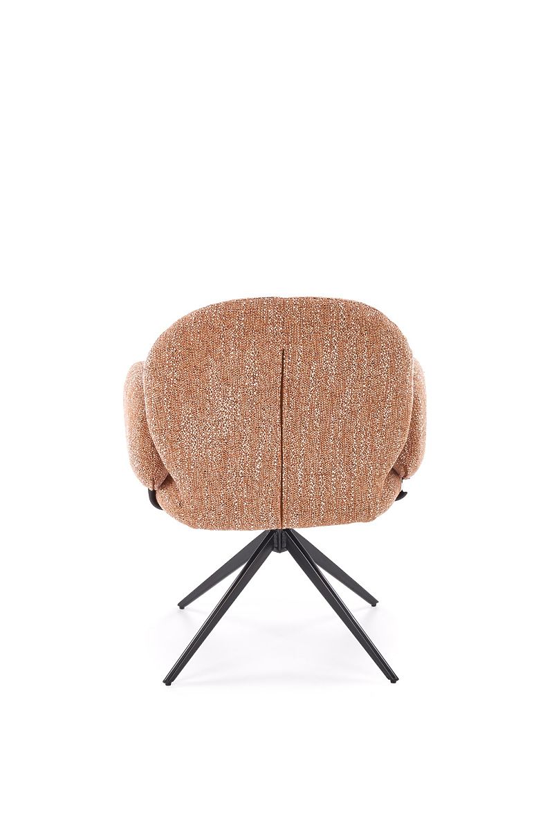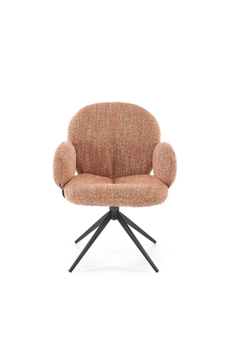 Drehbarer Stuhl aus Stoff und Stahl in Zimtfarbe. .. mehr