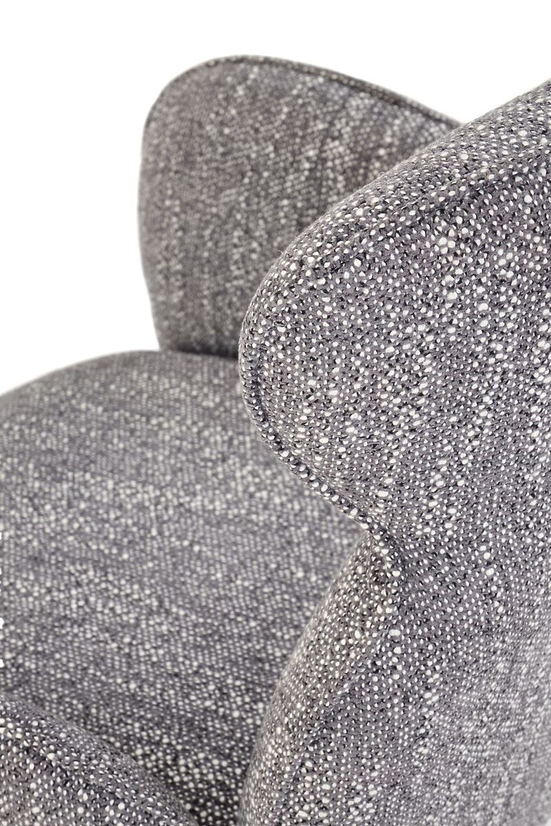 Drehbarer Stuhl aus grauem Stoff und Stahl. .. mehr