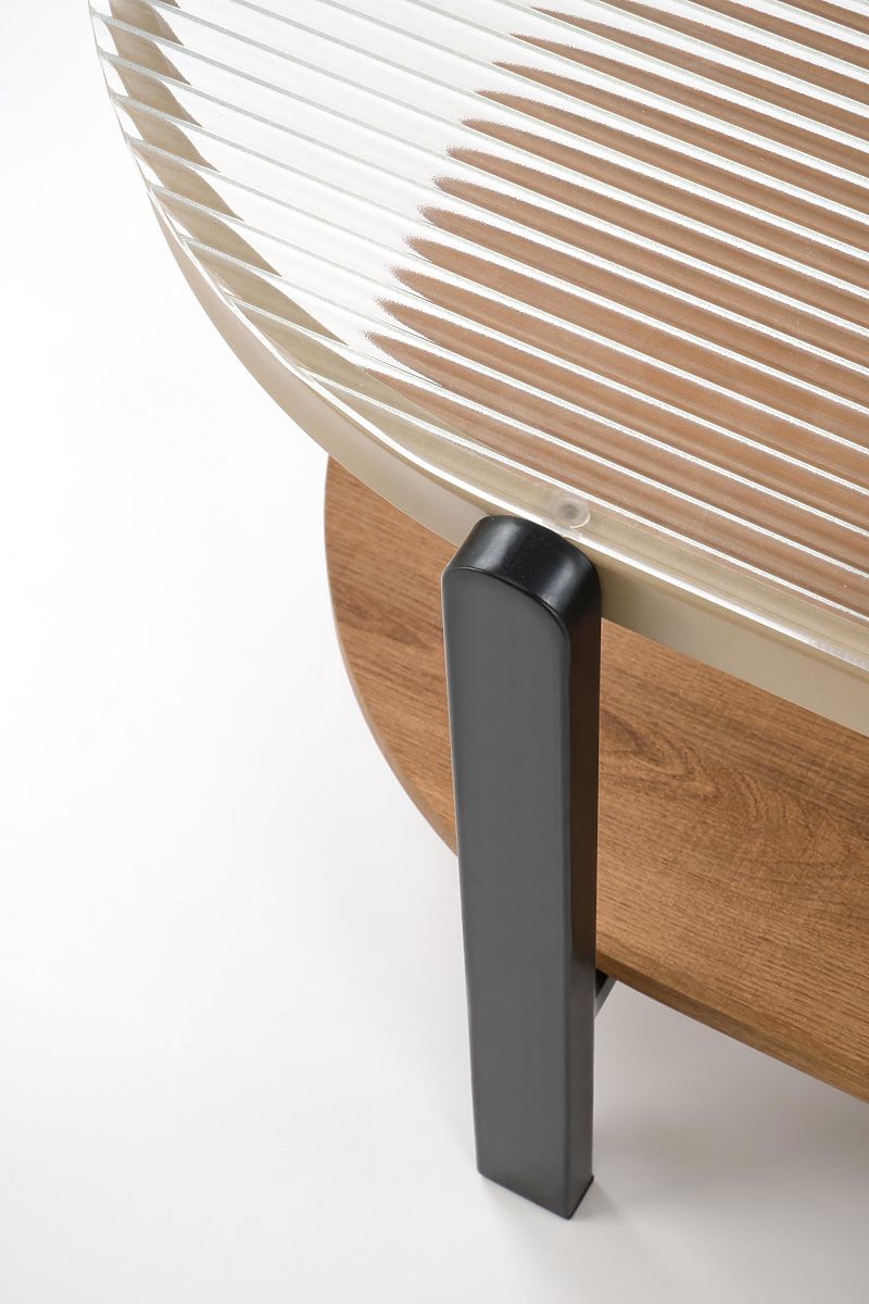 Couchtisch aus Glas und furniertem MDF in natur-schwarz. .. mehr