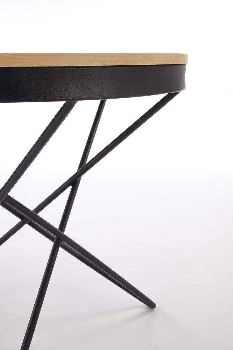 Runder Couchtisch aus MDF und Stahl in Natur-Schwarz. .. mehr