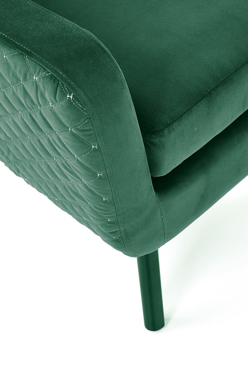 Relaxsessel mit dunkelgrüner Polsterung und schwarzen Beinen. .. mehr