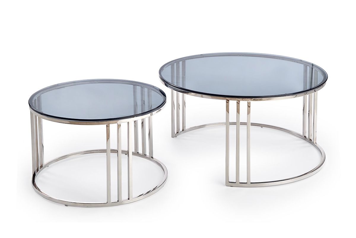 Luka-home.de » Tische und Couchtische / Couchtische / MERCURY Set aus 2 Bänken, Rahmen - silber, Glas - rauchig (1p=1Stk)