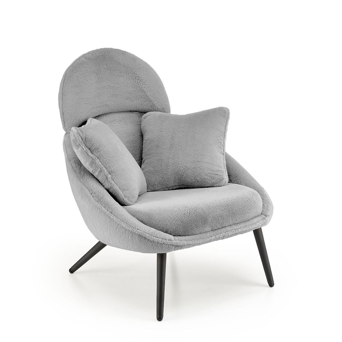 Relaxsessel aus grauem Stoff und pulverbeschichtetem Stahl. .. mehr