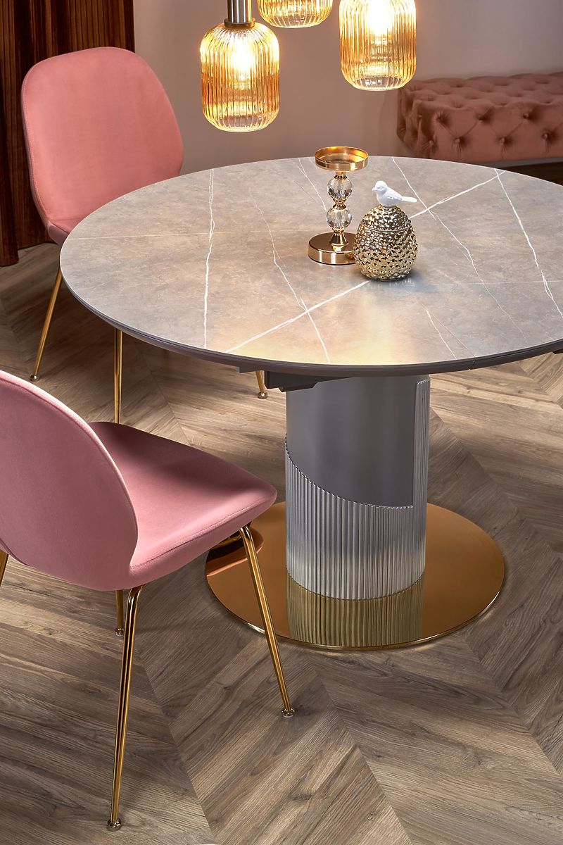 Luka-home.de » Esszimmer a küche / Hochstühle tische / MUSCAT ausziehbarer Tischplatte - grauer Marmor, Bein - hellgrau / gold
