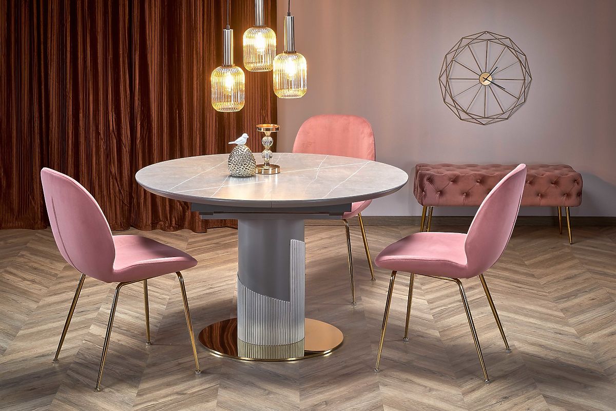 Luka-home.de » Esszimmer und Küche / Esstische / MUSCAT ausziehbarer Tischplatte - grauer Marmor, Bein - hellgrau / gold