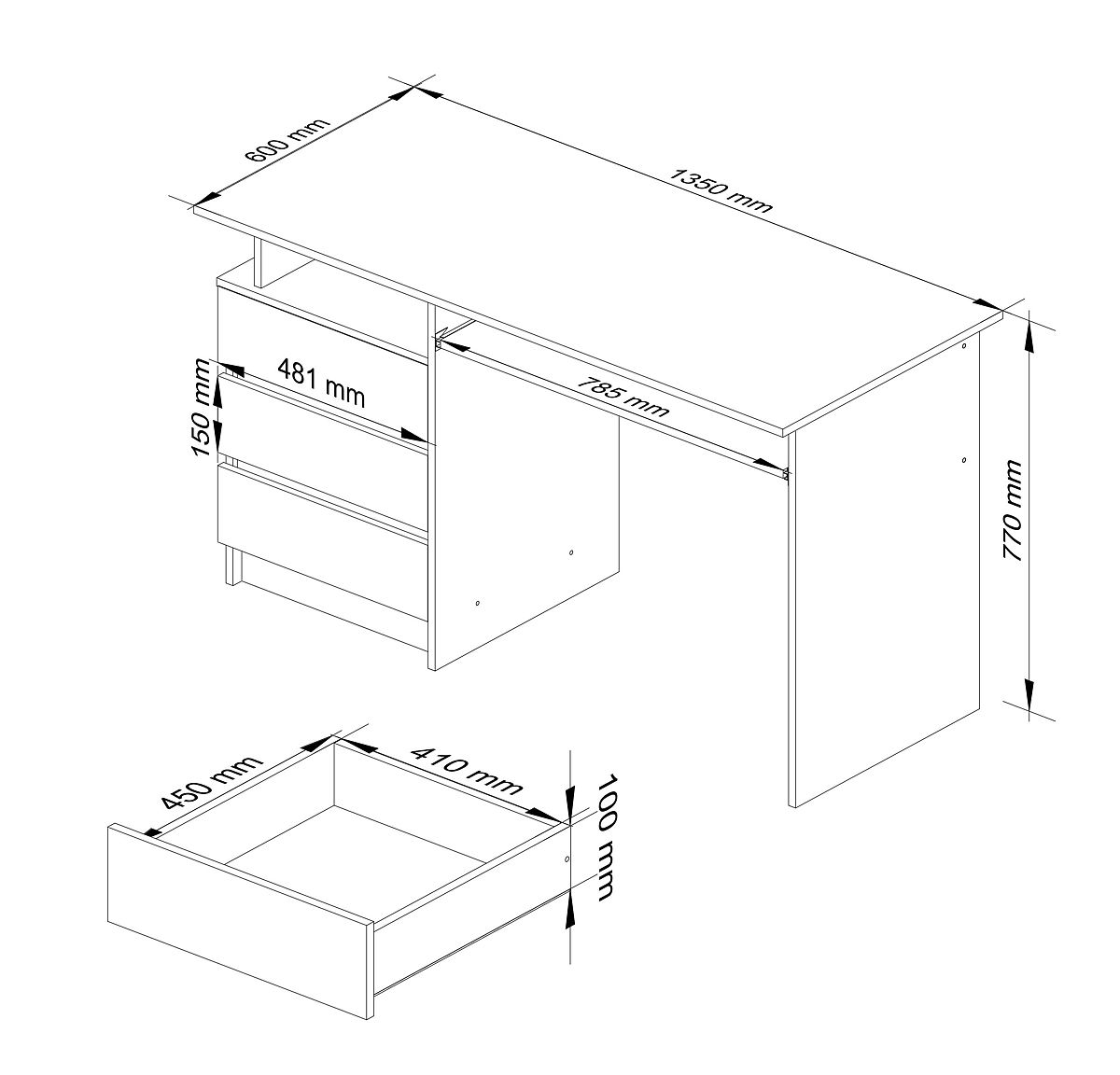 Der weiße freistehende Tisch ist ein modern gestaltetes Möbelstück, das perfekt zu den aktuellen Einrichtungstrends passt. Er besticht durch seine Einfachheit und Eleganz in modischem Weiß. Der Tisch verfügt über drei geräumige Schubladen, ein offenes Regal, eine ausziehbare Tastaturablage und eine breite (135 Zentimeter) Platte. Der freistehende Tisch CLP eignet sich sowohl für das Büro als auch für das Homeoffice. Dieses Angebot wird sicherlich die Erwartungen derjenigen erfüllen, für die die Arbeitsfläche am wichtigsten ist. Ihre Tiefe beträgt bis zu 60 Zentimeter, was eine komfortable Nutzung von Computer und anderen Büromaterialien ermöglicht. Das Produkt ist auch als Gaming-Tisch beliebt, bei dem der Raum und der Komfort des Benutzers während langer Spielzeiten sehr wichtig sind.