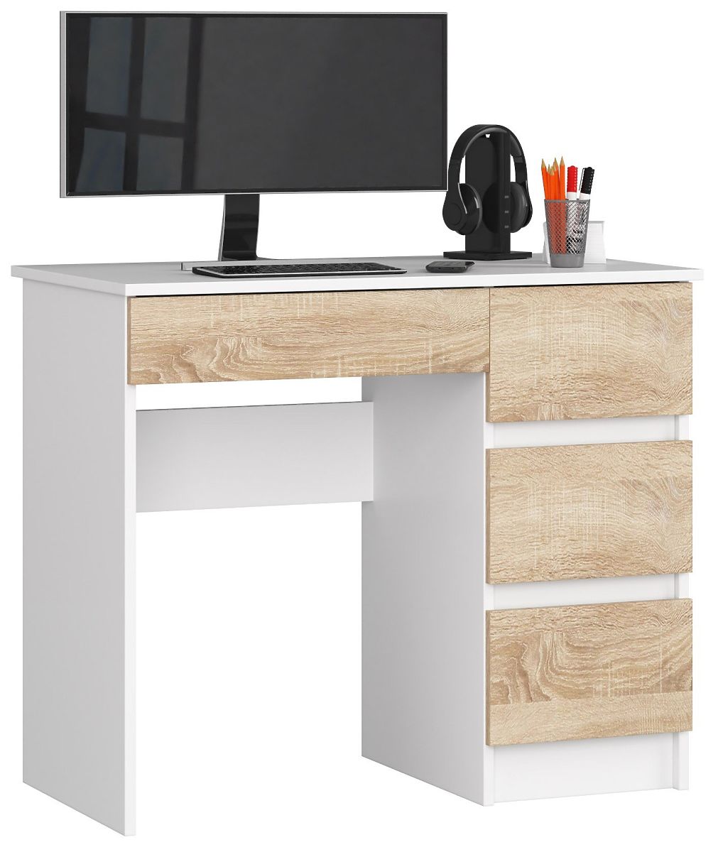Computertisch A-7 mit vier Schubladen in Weiß und Sonoma. .. mehr