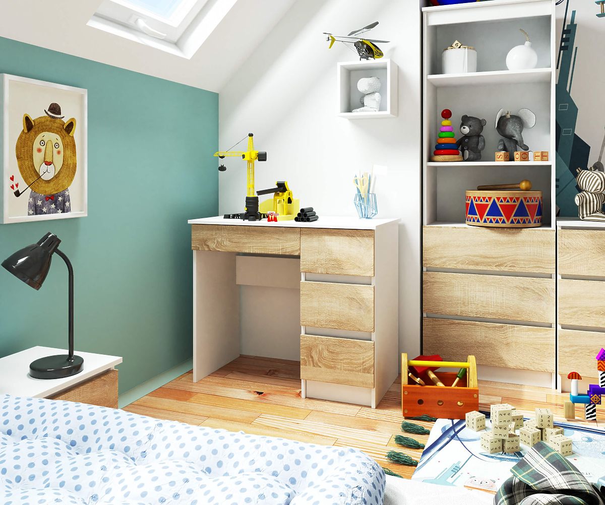 Ein Tisch mit vier Schubladen, der für Jugendliche gedacht ist.