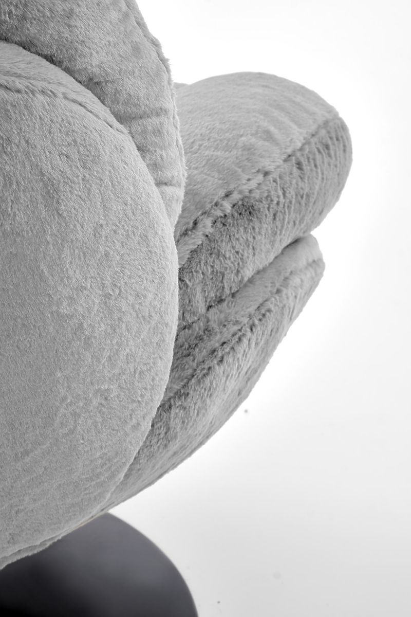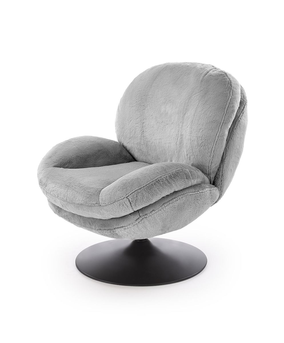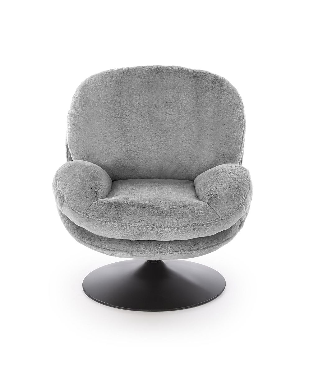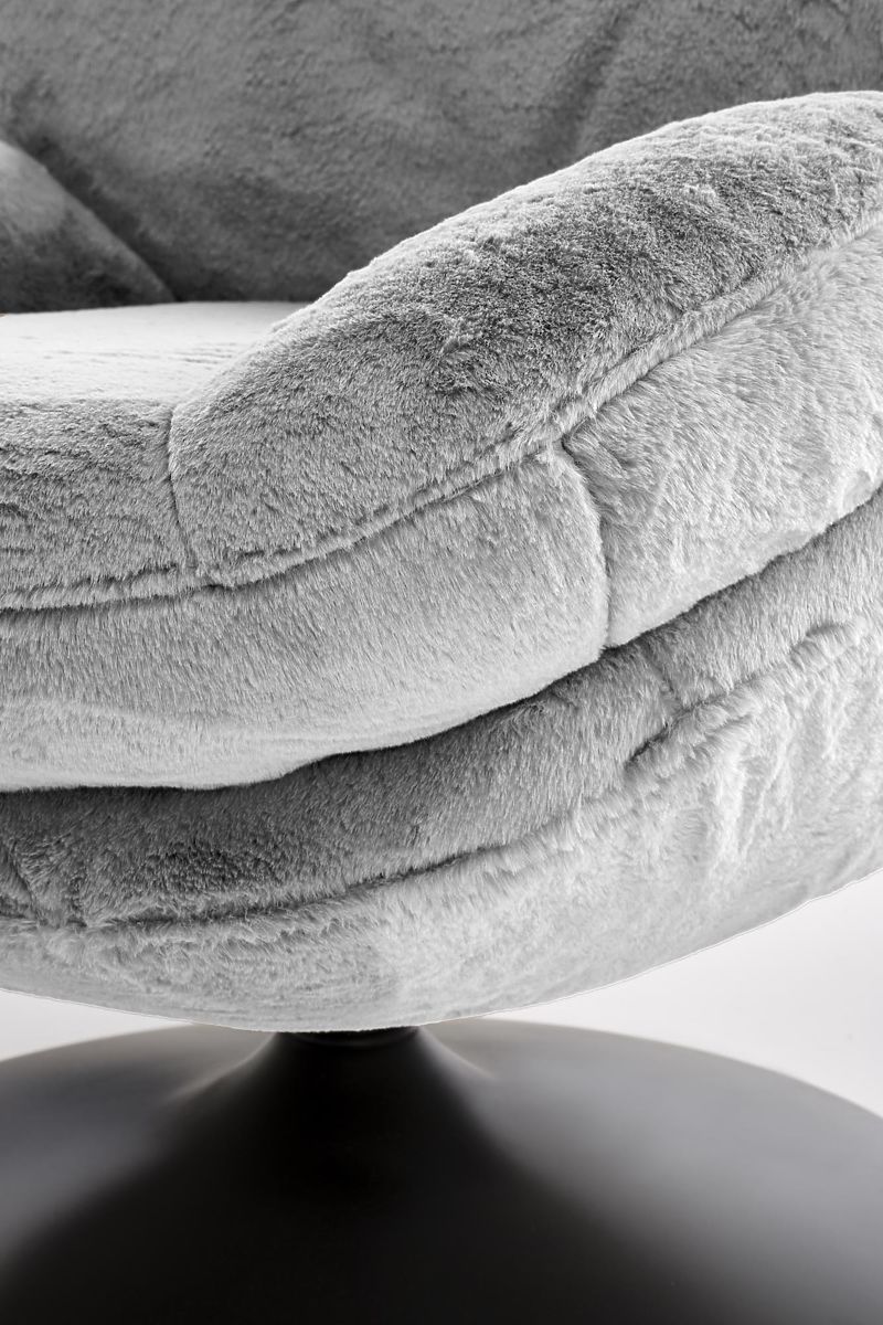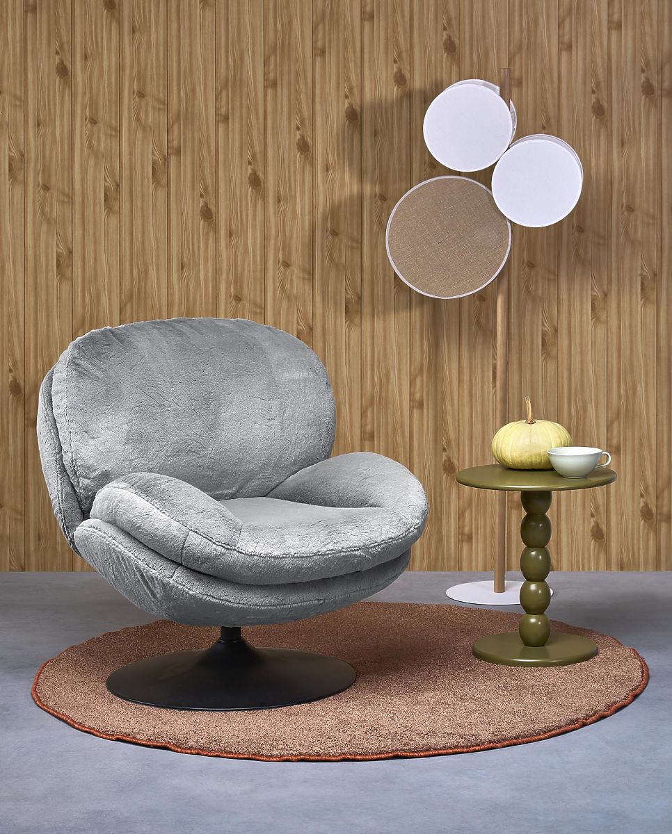 Drehbarer Relaxsessel aus grauem Stoff. .. mehr