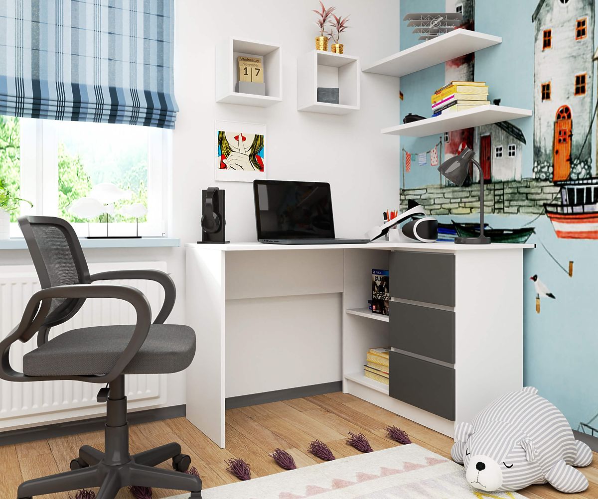 In Häusern, Wohnungen und Büros sind Eckschreibtische immer häufiger zu sehen. Sie sind nicht nur modisch, sondern auch funktional. Personen, die Möbel in Weißtönen suchen, können den Eckschreibtisch B16 mit einer Breite von 124 cm wählen. Er eignet sich hervorragend zum Lernen oder für berufliche Verpflichtungen und hat gleichzeitig ein modernes Aussehen. Er enthält Regale und Schubladen, in denen Dokumente, Bücher, Büromaterialien und vieles mehr aufbewahrt werden können. Das Möbelstück zeichnet sich durch Langlebigkeit aus. Es ist für die Selbstmontage vorgesehen, was nicht schwierig ist, da jeder Bestellung eine Anleitung beiliegt.