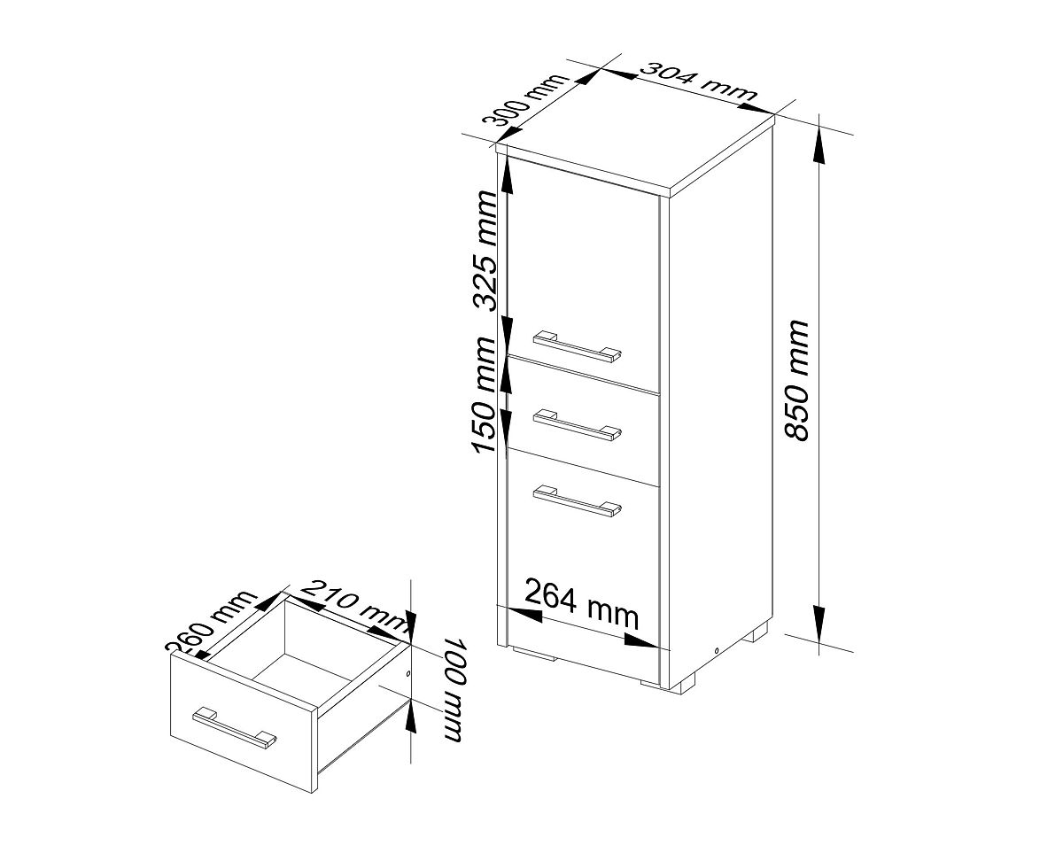 Die hohe Luftfeuchtigkeit im Badezimmer erfordert, dass die Möbel besonders widerstandsfähig sind. Der angebotene Badezimmerschrank FIN 2D 1SZ ist aus einer 16 mm dicken laminierten Platte der Firma Kronospan gefertigt. Die Kanten sind mit einer ABS-Kante abgeschlossen. All dies macht den Schrank kratz-, mechanisch und feuchtigkeitsbeständig. Der Schrank ist sehr vielseitig. Im Lieferumfang sind sowohl verstellbare Aufhänger für die Wandmontage als auch Füße für die Bodenaufstellung enthalten. Der untere Teil des Regals ist ein geschlossener Raum, ideal zur Aufbewahrung von Handtüchern. Im Inneren der oberen Türen befindet sich ein Regal zur Sortierung von Kosmetika. Der mittlere Teil der Säule enthält eine ausziehbare Schublade. Die Möbel sind in der Farbe Eiche Sonoma ausgeführt und die Türen sind mit silbernen Griffen verziert.