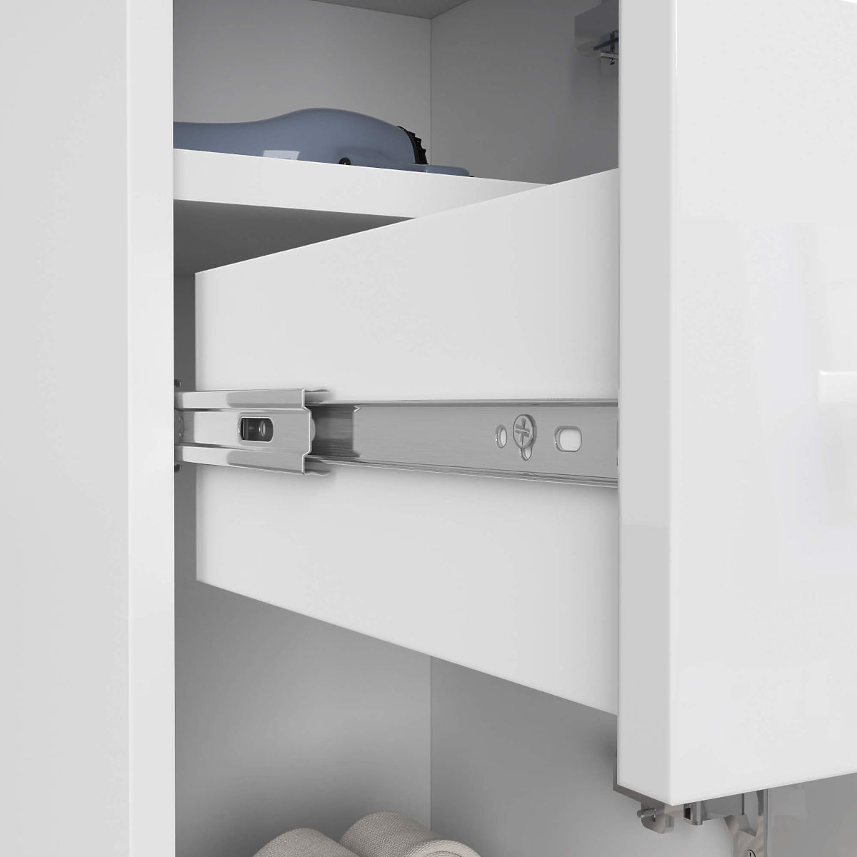 Badezimmerschrank-Säule mit Hochglanz-Fronten und vielseitiger Nutzung. .. mehr