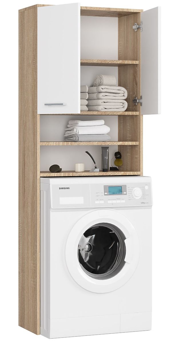 Luka-home.de » Bathroom & Toilet / Badezimmer schränke / BADEZIMMERREGAL FIN SÄULE 2D WASCHMASCHINE SONOMA - WEISS