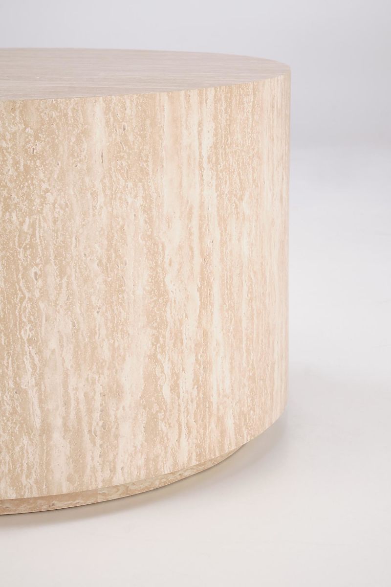 Runder Couchtisch mit Travertin-Dekor aus MDF. .. mehr