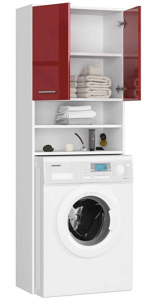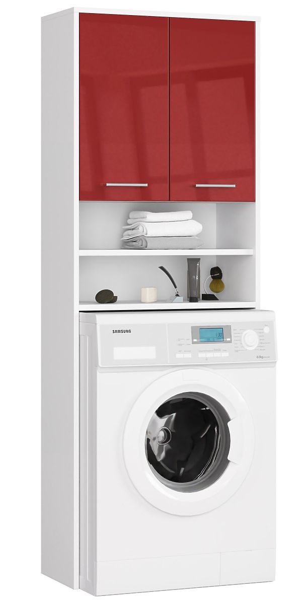 Luka-home.de » Bathroom & Toilet / Badezimmer schränke / BADEZIMMERREGAL FIN ÜBER DER WASCHMASCHINE WEISS / ROTER GLANZ