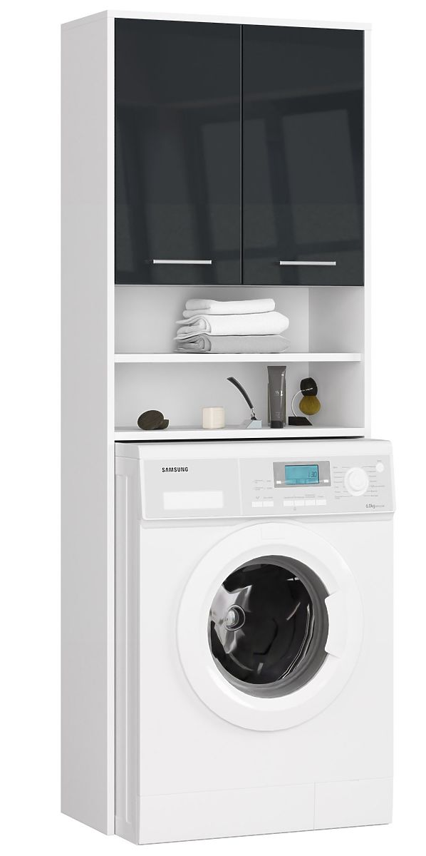 Luka-home.de » Bathroom & Toilet / Badezimmer schränke / BADEZIMMERREGAL FIN ÜBER DER WASCHMASCHINE WEISS / GRAPHIT GLANZ