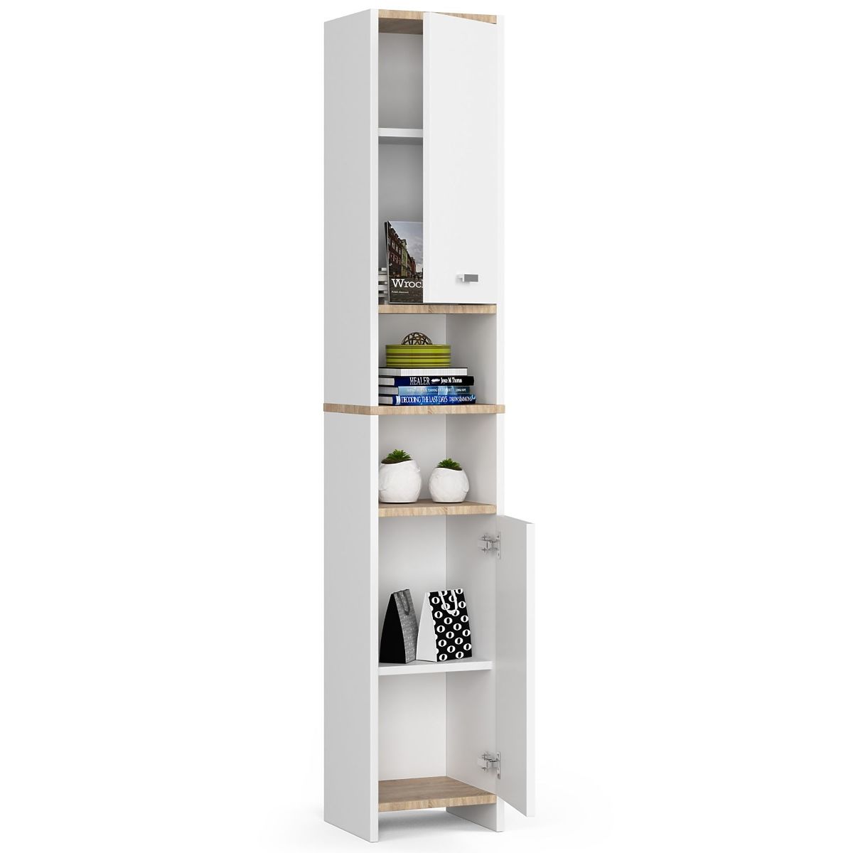 Weißes Badezimmerregal mit 2 Türen und 4 Einlegeböden. .. mehr
