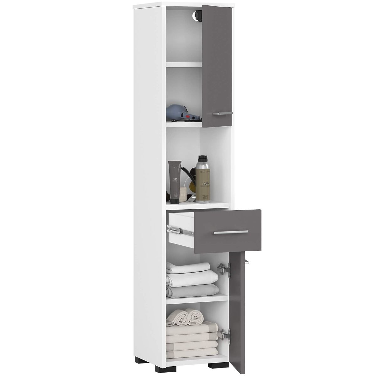 Luka-home.de » Bathroom & Toilet / Badezimmer schränke / BADEZIMMERSCHRANK FIN HOCHSCHRANK 30 2D 1SZ 1W 140cm PK WEISS / GRAU