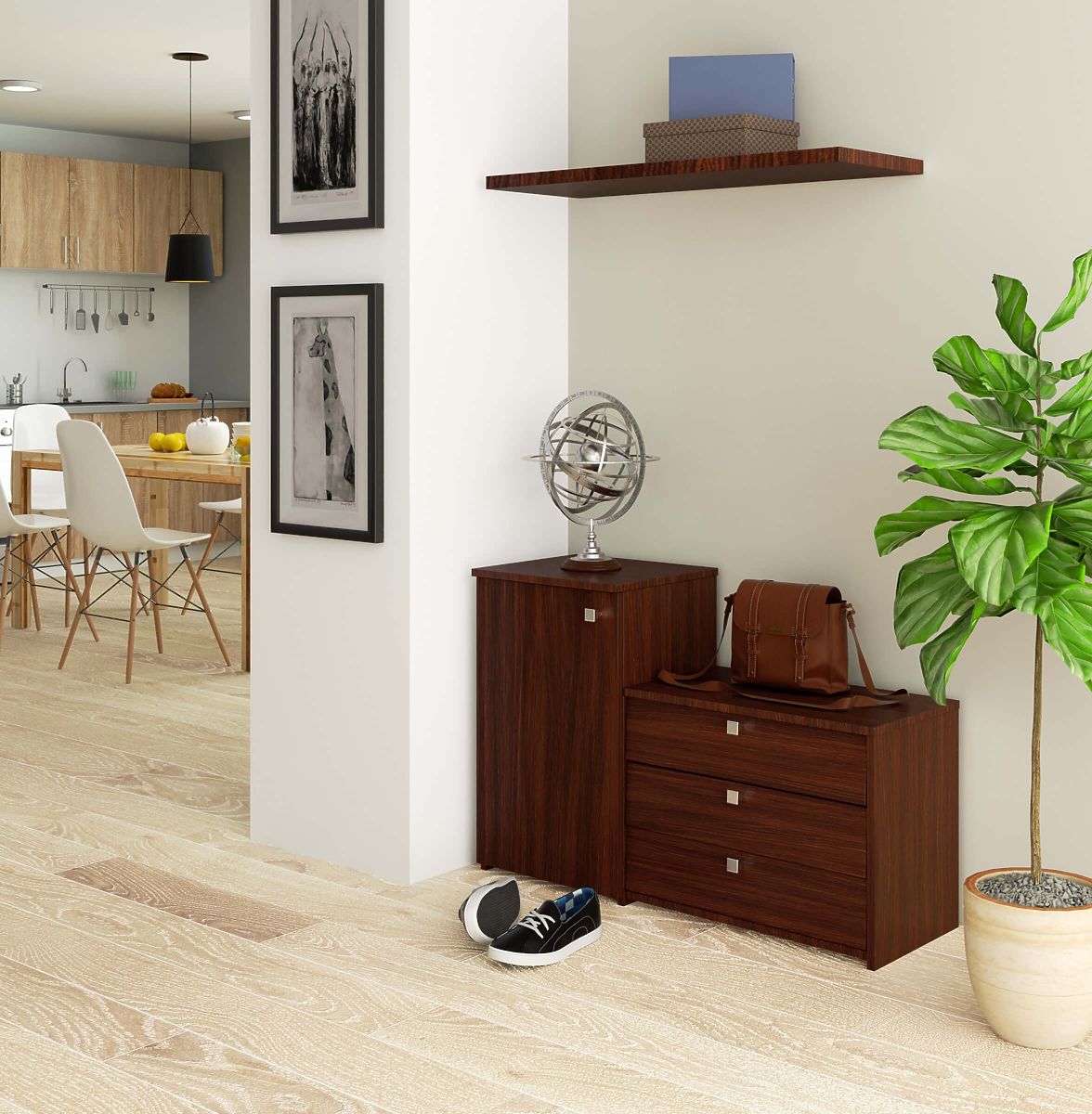 WENGE MÖBELSET FÜR DEN FLUR Der Schuhschrank kombiniert mit einer Kommode sorgt für Funktionalität und Platzersparnis.