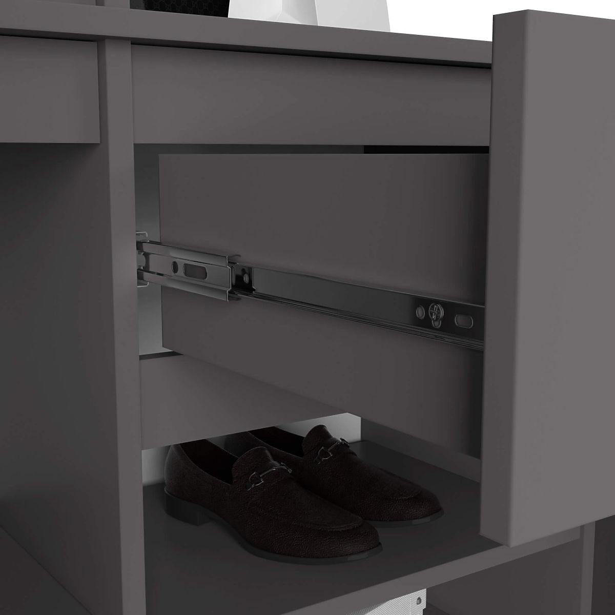 In Räumen mit begrenztem Platz sind Lösungen erforderlich, die die Funktionalität des Innenraums maximieren. Der Flurschrank ENTRO ist eine ausgezeichnete Wahl für einen schmalen Flur oder Eingangsbereich. Er ermöglicht eine clevere Nutzung des kleinen Raums und verleiht dem Raum gleichzeitig einen modernen Stil. Das Produkt bietet eine Vielzahl praktischer Lösungen, darunter ausreichend Platz zum Aufhängen von Jacken oder Mänteln, ein Regal für Schuhe und Accessoires sowie eine Schublade für Kleinigkeiten. Die außergewöhnlich funktionale Anordnung und die große Auswahl an Farbvarianten erfüllen die Erwartungen selbst der anspruchsvollsten Benutzer.