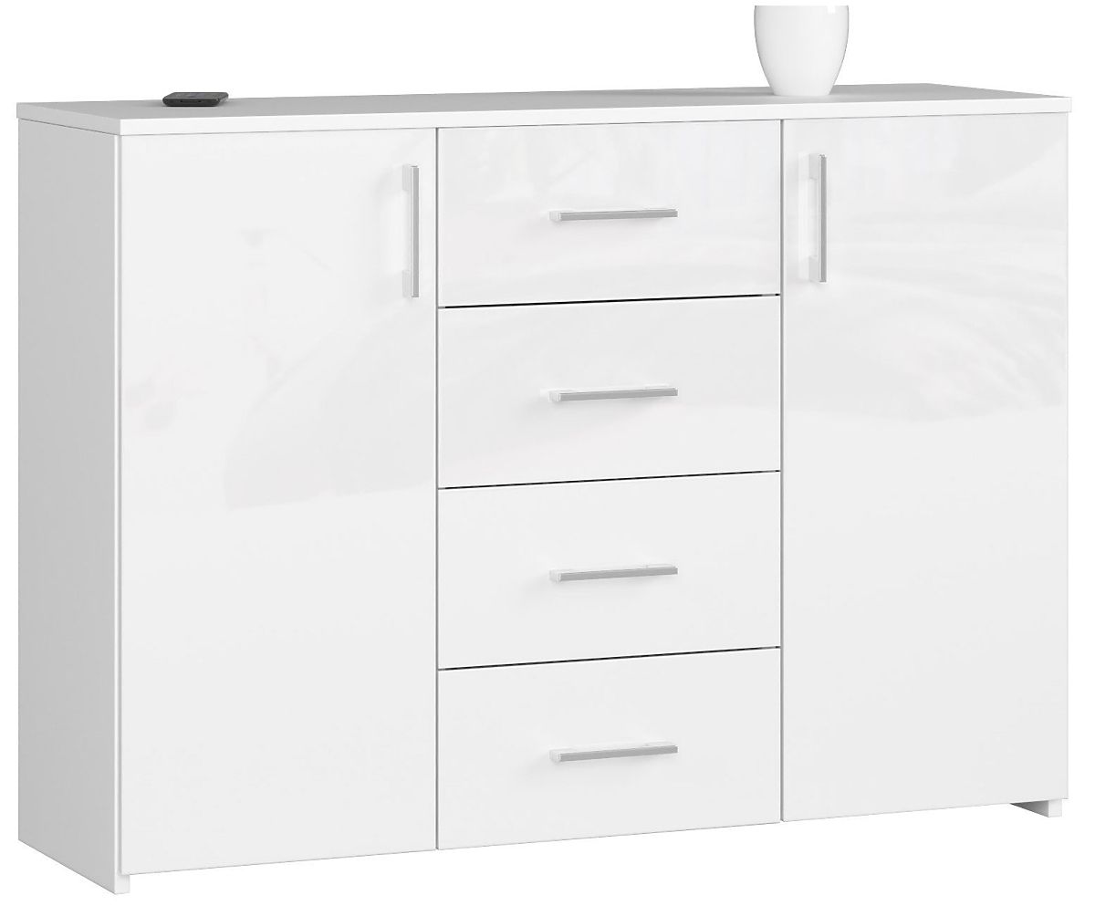 Kommode K45 mit 4 Schubladen und 2 Türen in Weiß Hochglanz. .. mehr