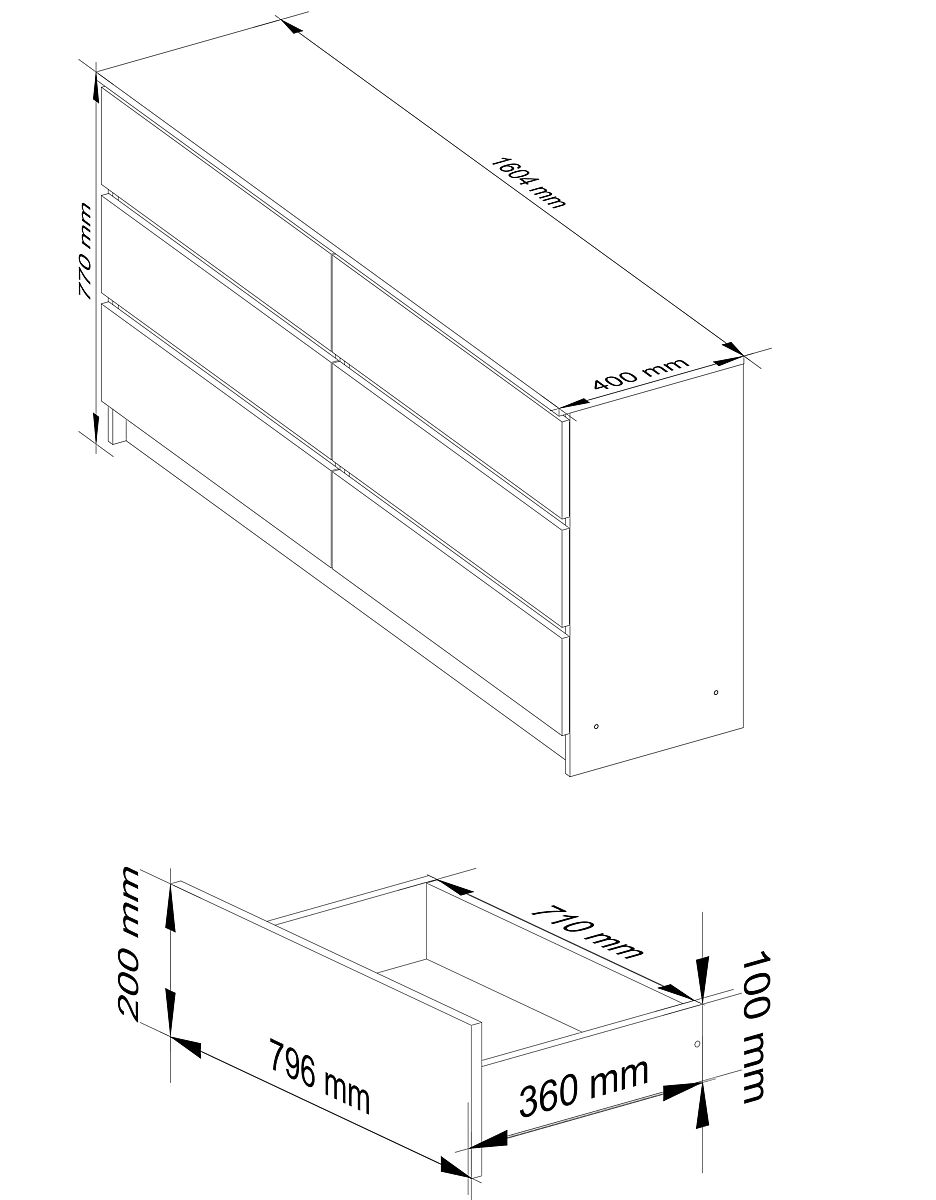 - Korpus der Kommode aus 16mm abriebfestem weiß mattem laminiertem Plattenmaterial