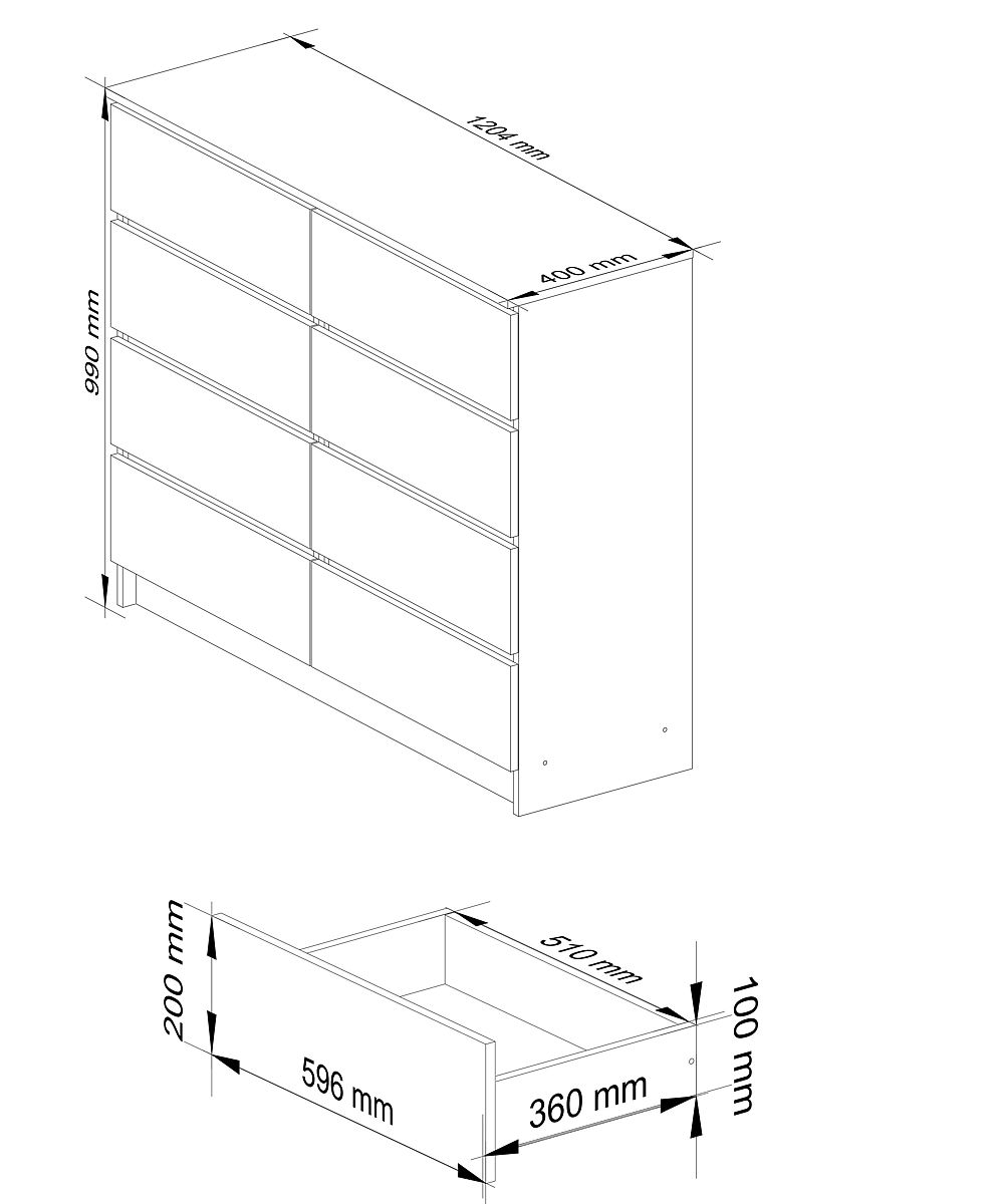 Einfaches, modernes Design und höchste Funktionalität - das sind die Eigenschaften, die die präsentierte Kommode K120 mit acht geräumigen Schubladen auszeichnen. Das Möbelstück ist in der Farbe Erle erhältlich - einem der von unseren Kunden am häufigsten gewählten Farbtöne. Die von uns angebotenen Kommoden sind Möbel mit einer soliden Konstruktion, die im täglichen Gebrauch einfach zu handhaben sind, weshalb sie sich hervorragend für Räume wie Büros oder Wohnzimmer eignen. Sie werden auch häufig für Schlafzimmer, Esszimmer, Arbeitszimmer, Gästezimmer oder Flure gewählt. Sie bestechen durch Langlebigkeit, Widerstandsfähigkeit und Schadensresistenz. Es sind solide Möbel, zu denen Sie viele weitere Elemente anpassen können, um ein einheitliches Ganzes zu schaffen. Die Kommode in der Farbe Erle ist in unserem Online-Shop zu einem besonders günstigen Preis erhältlich.