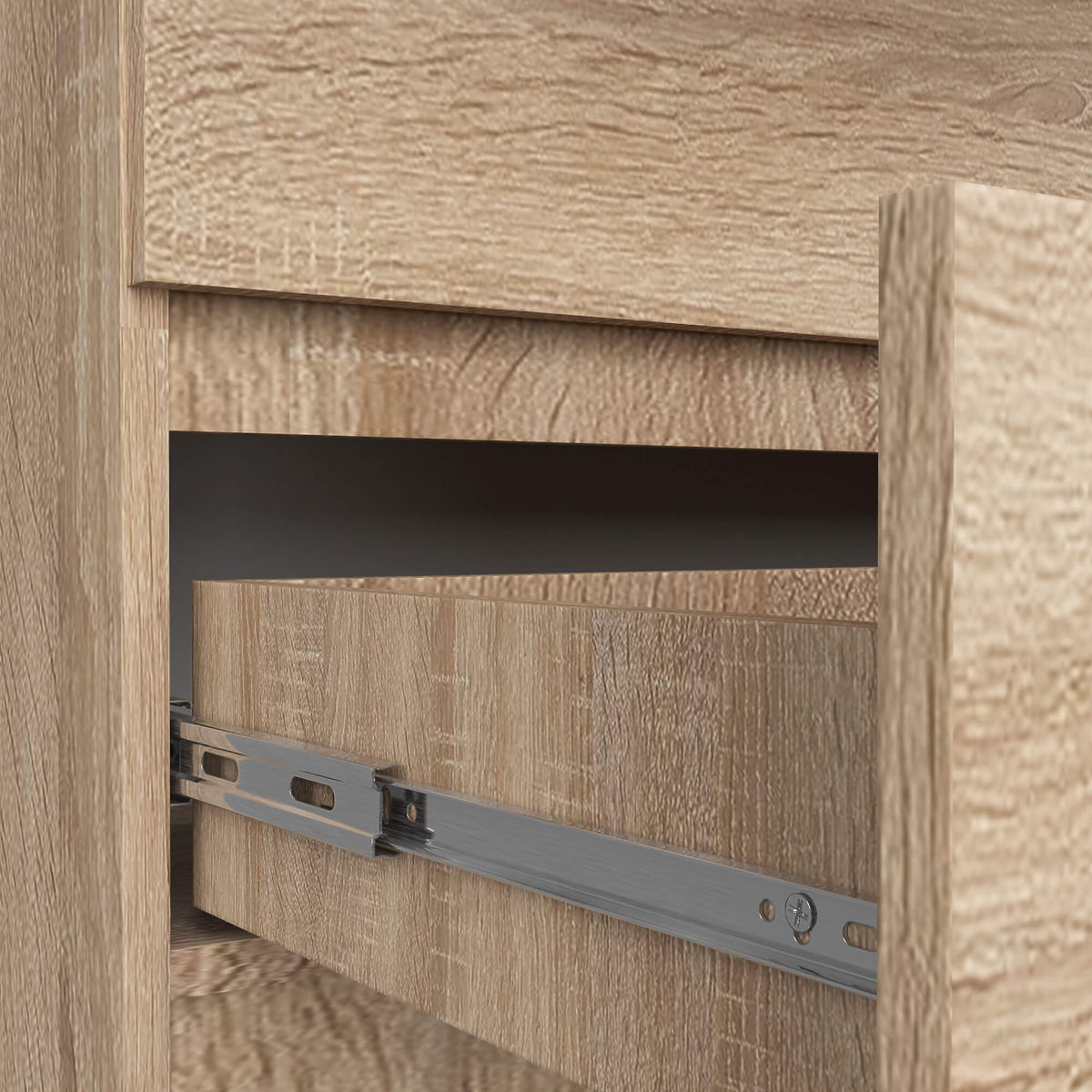 - Schubladen bewegen sich auf Metallkugelführungen