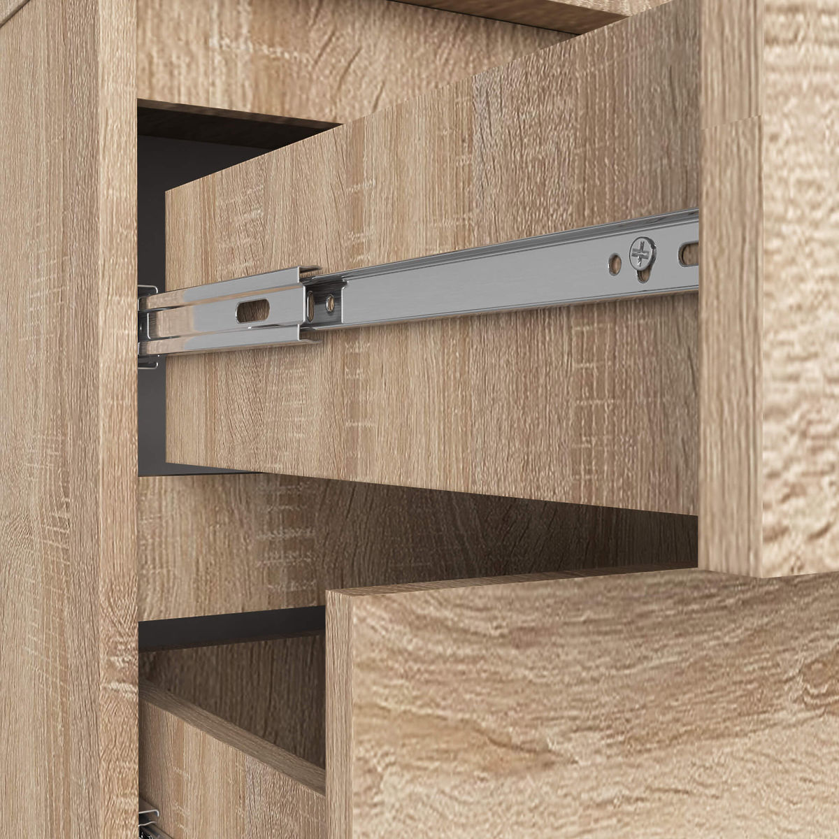 - Schubladen bewegen sich auf Metallkugellagern