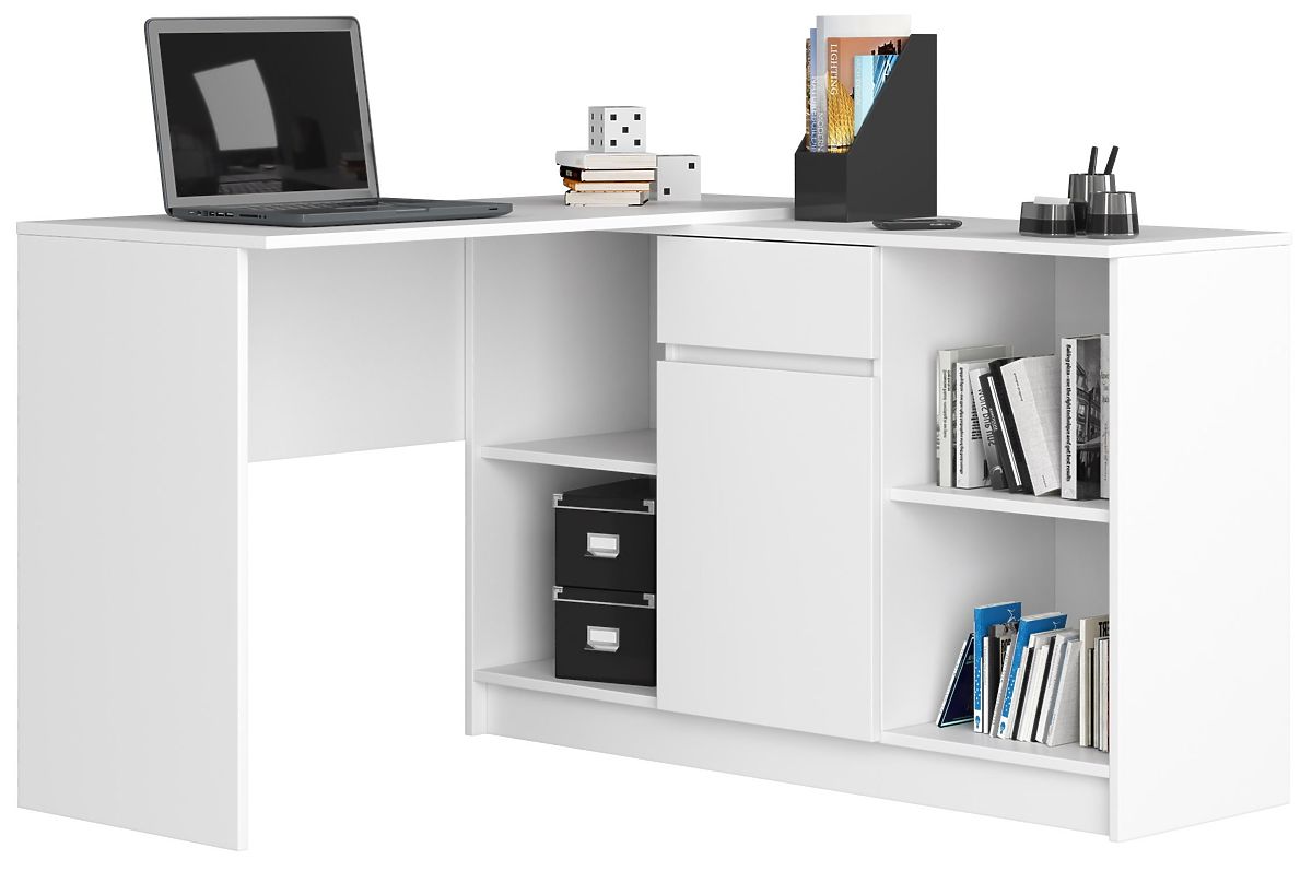 Kommode aus der Serie B-17 Weiß. Die modulare Konstruktion der Kommode ermöglicht die Erstellung eines Eckschreibtisch-Sets, das in unserem Geschäft erhältlich ist. Sie funktioniert auch hervorragend als eigenständiges Möbelstück.