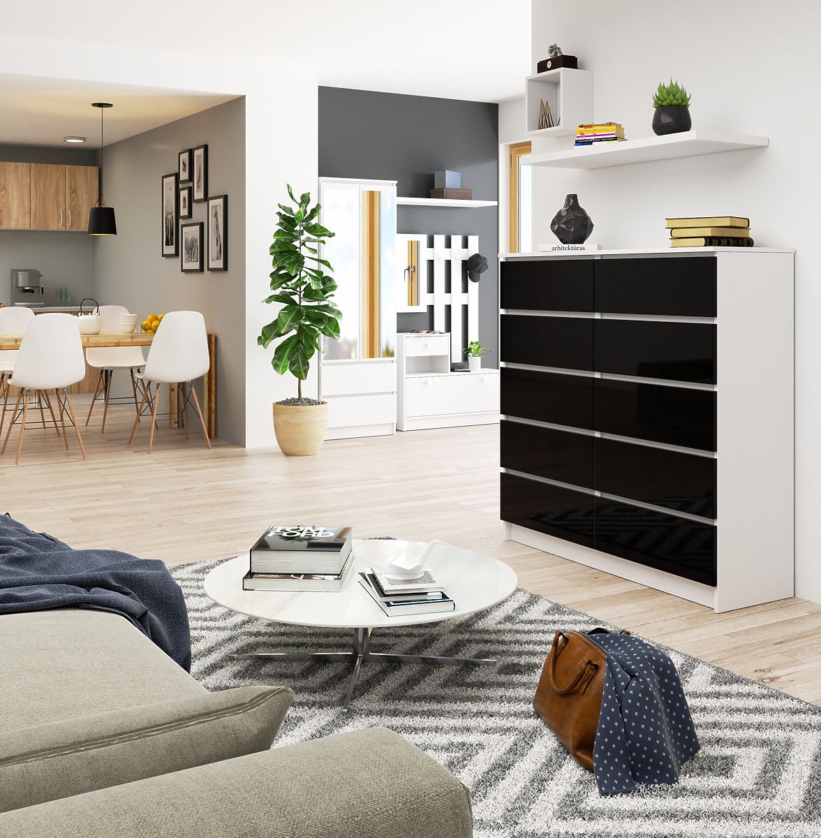 Kommode mit 10 Schubladen und schwarzem Hochglanz. .. mehr