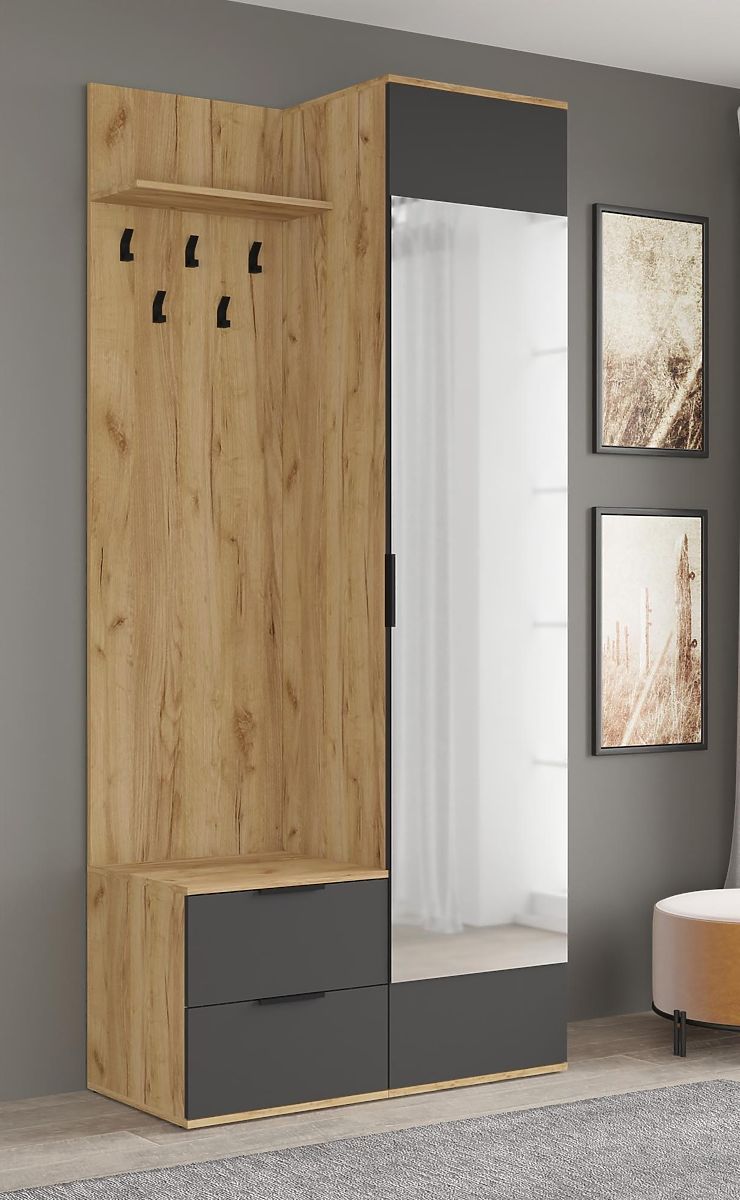 Flurset aus Eiche Gold und Anthrazit mit Spiegel. .. mehr