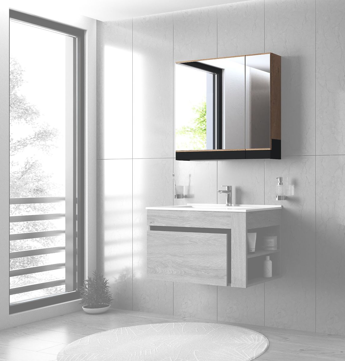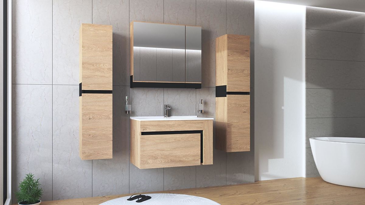 Spiegelschrank aus goldener Eiche mit Soft-Close-System. .. mehr