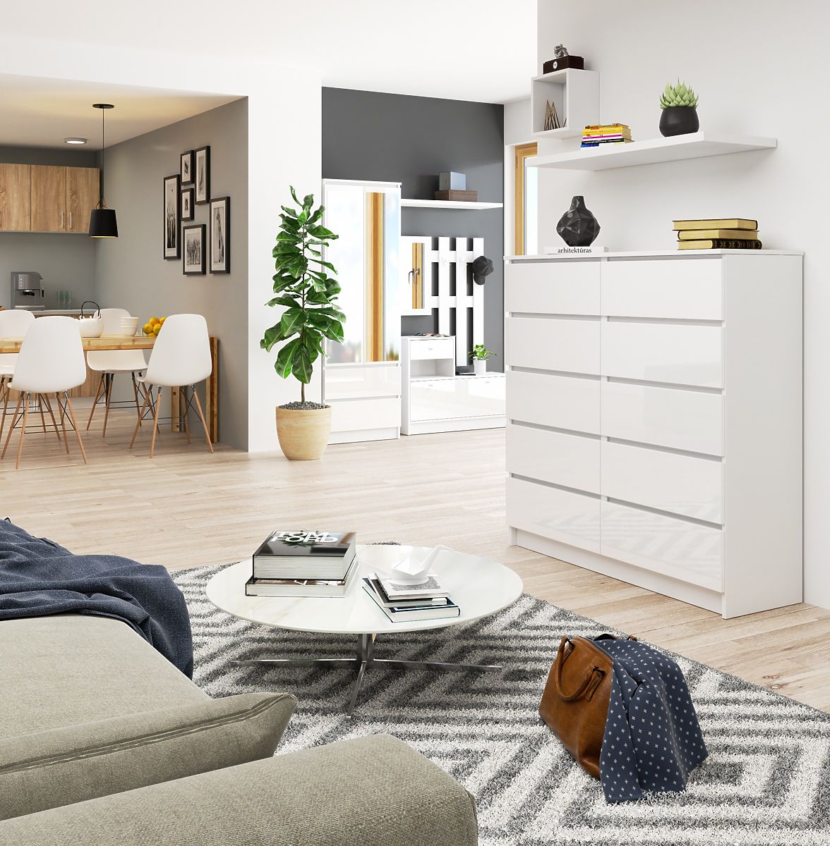 Kommode mit 10 Schubladen aus MDF mit Hochglanz. .. mehr