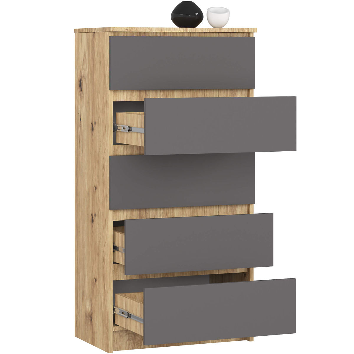 Kommode mit 5 Schubladen in Eiche Artisan und Grafit Grau. .. mehr