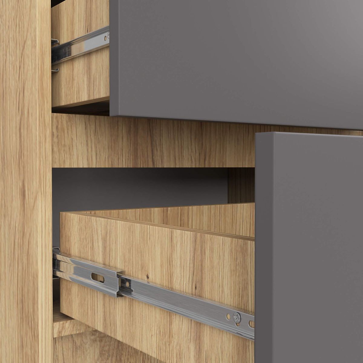 - Fronten der Schubladen aus laminiertem Plattenmaterial