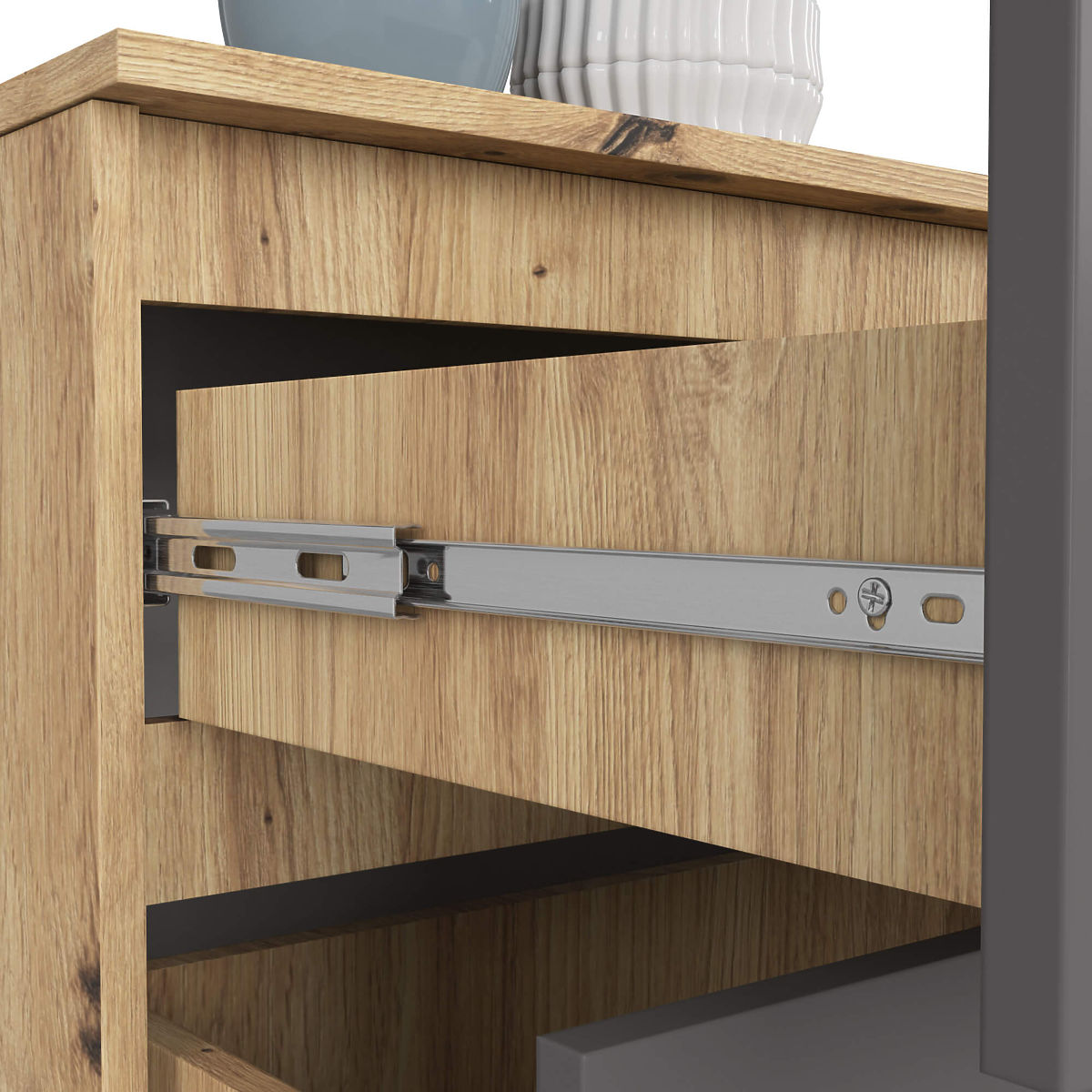 Kanten mit ABS-Kante umleimt, Korpus in EICHE ARTISAN / Frontseite in GRAFIT GRAU
