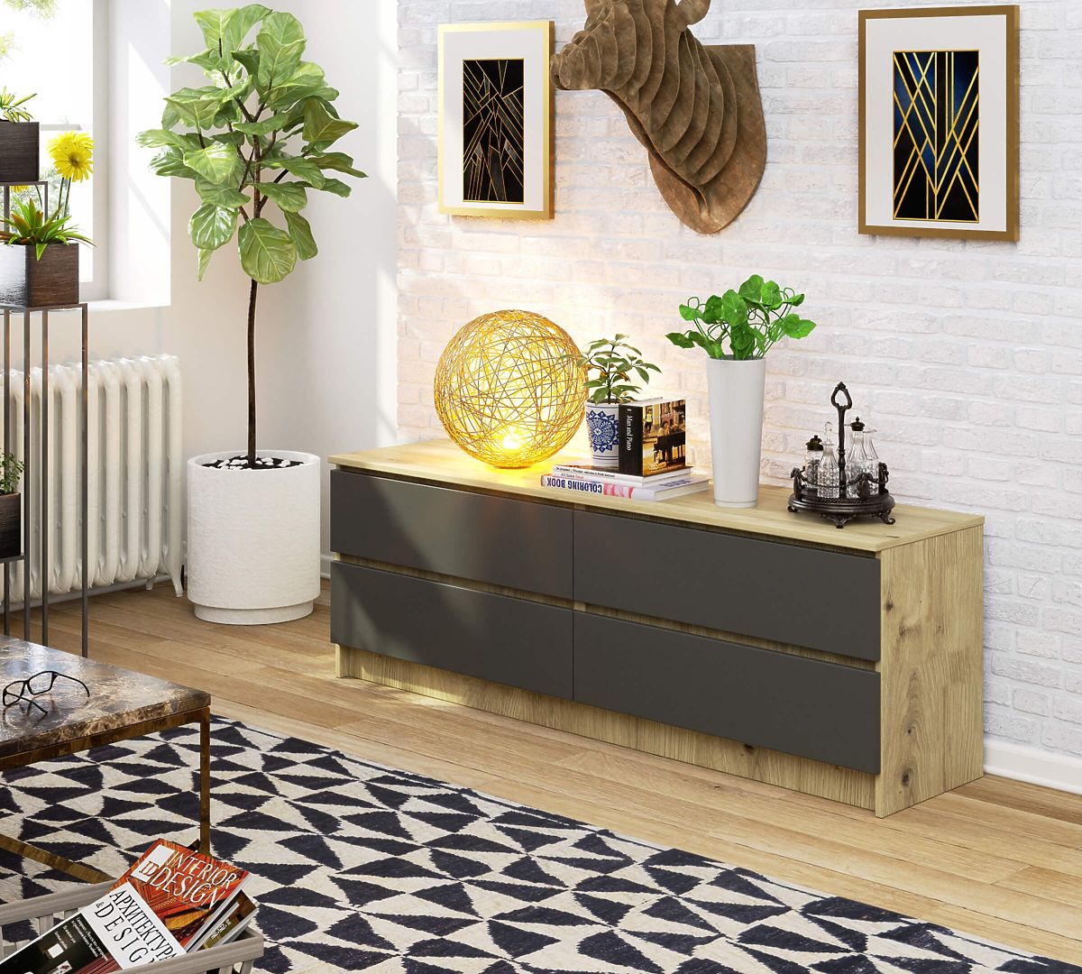 Kommode mit 4 Schubladen in Eiche Artisan und Grafit Grau. .. mehr