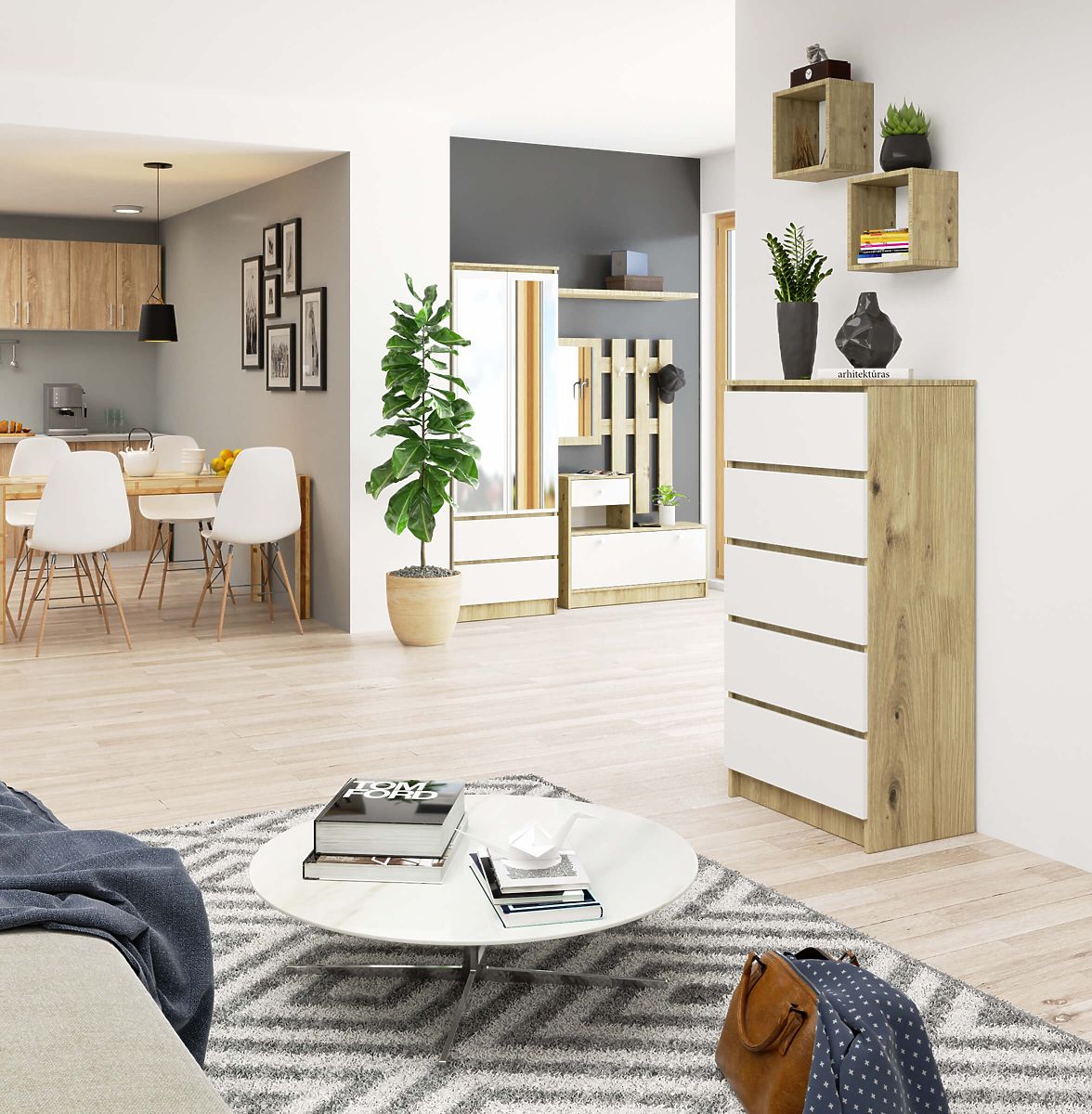 KOMMODE K60 MIT 5 SCHUBLADEN Hergestellt aus 16 mm abriebfestem laminiertem Holz.
