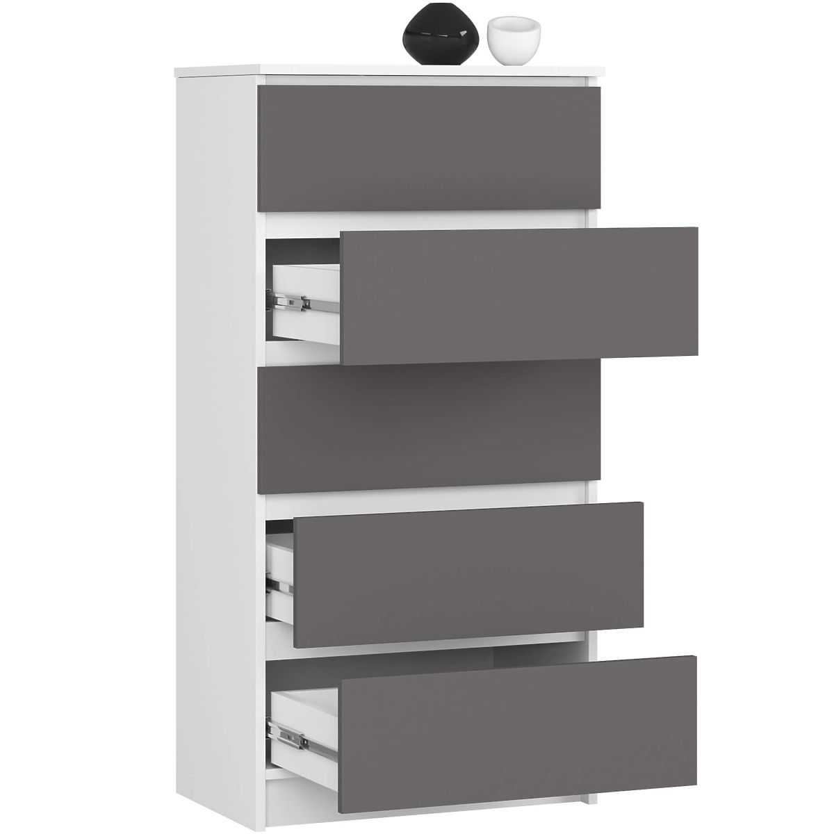 Kommode mit 5 Schubladen in Weiß und Grafit Grau. .. mehr