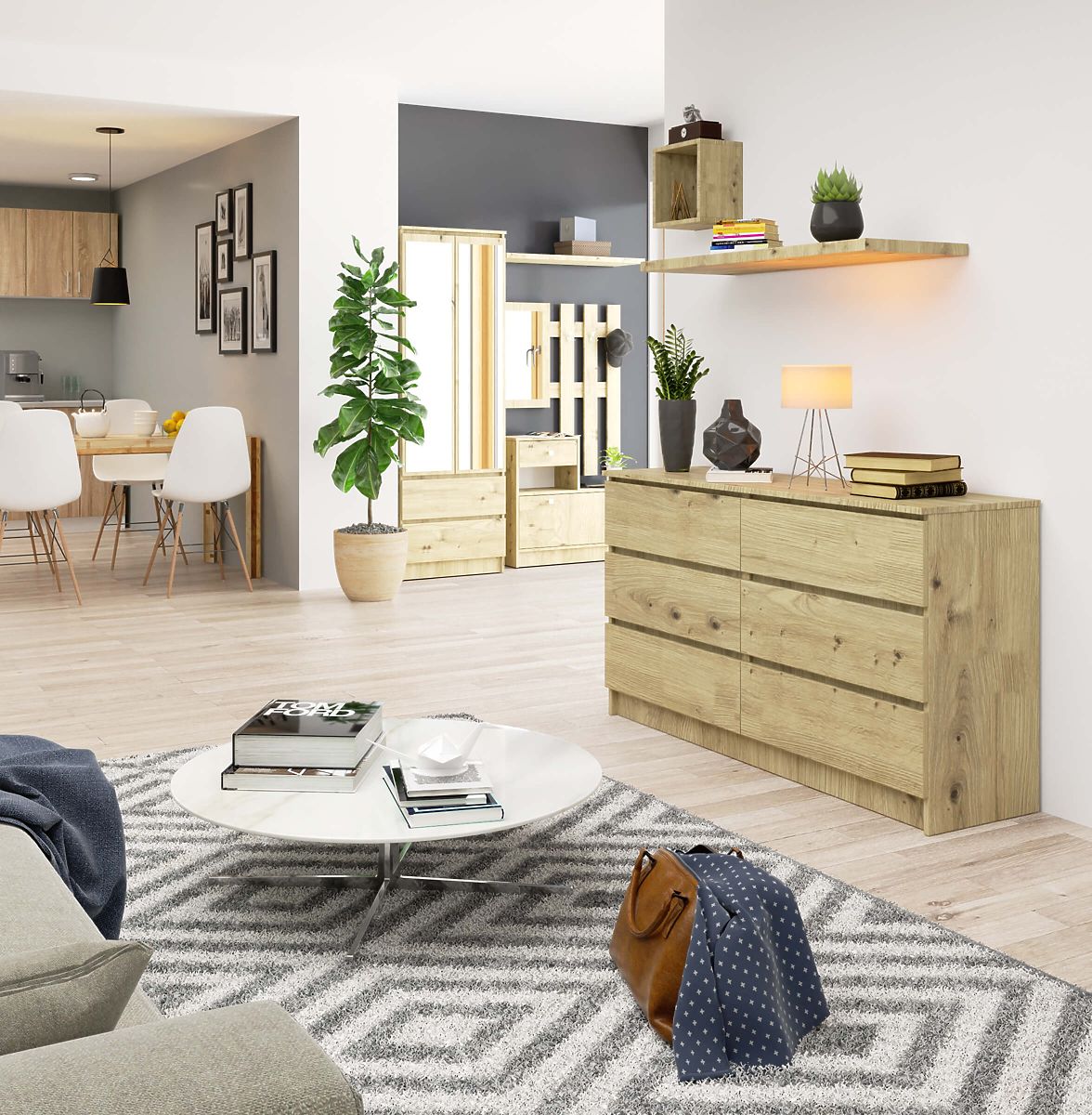 Kommode mit 6 Schubladen aus abriebfesten laminierten Platten. .. mehr