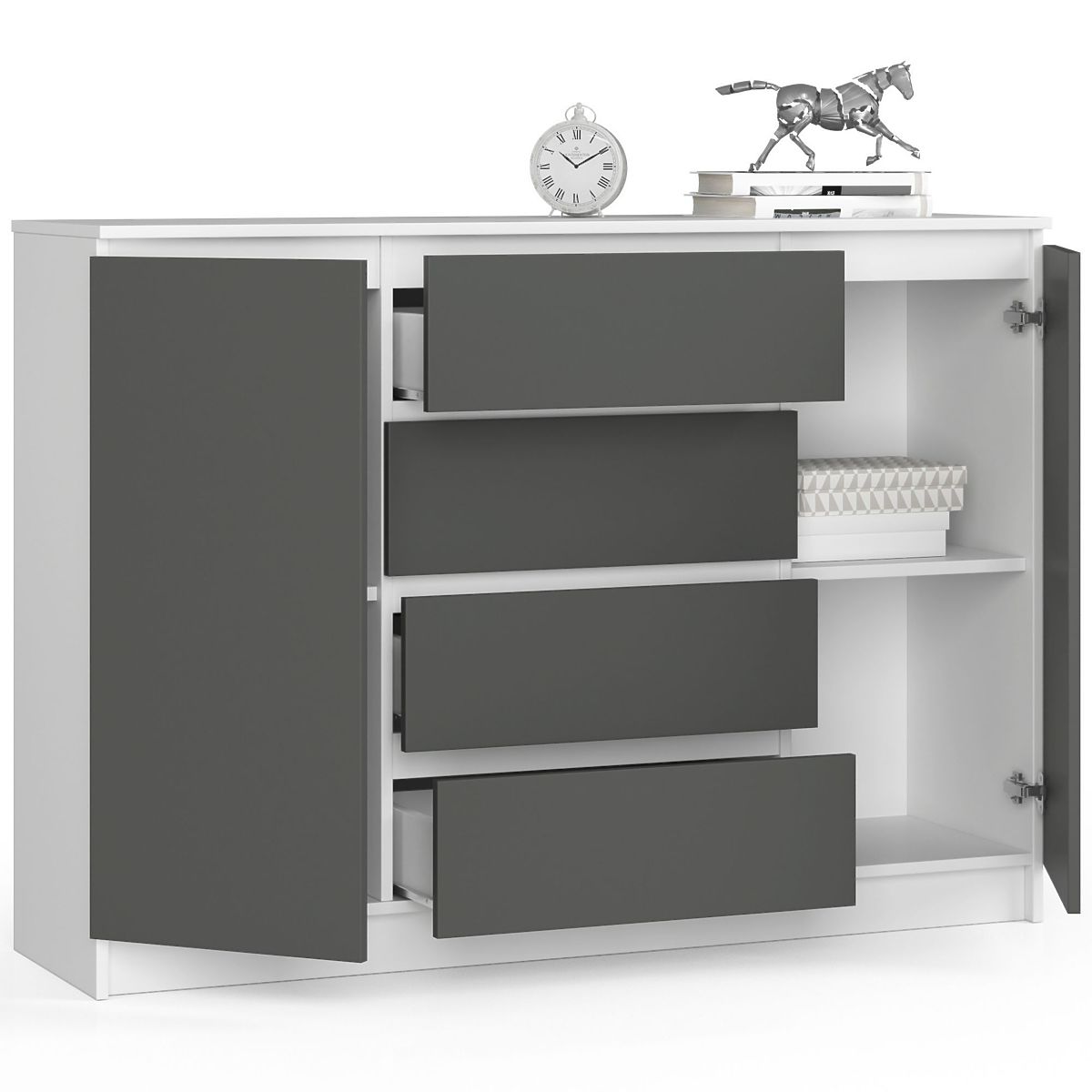 Kommode mit 2 Türen und 4 Schubladen in Weiß und Graphitgrau. .. mehr
